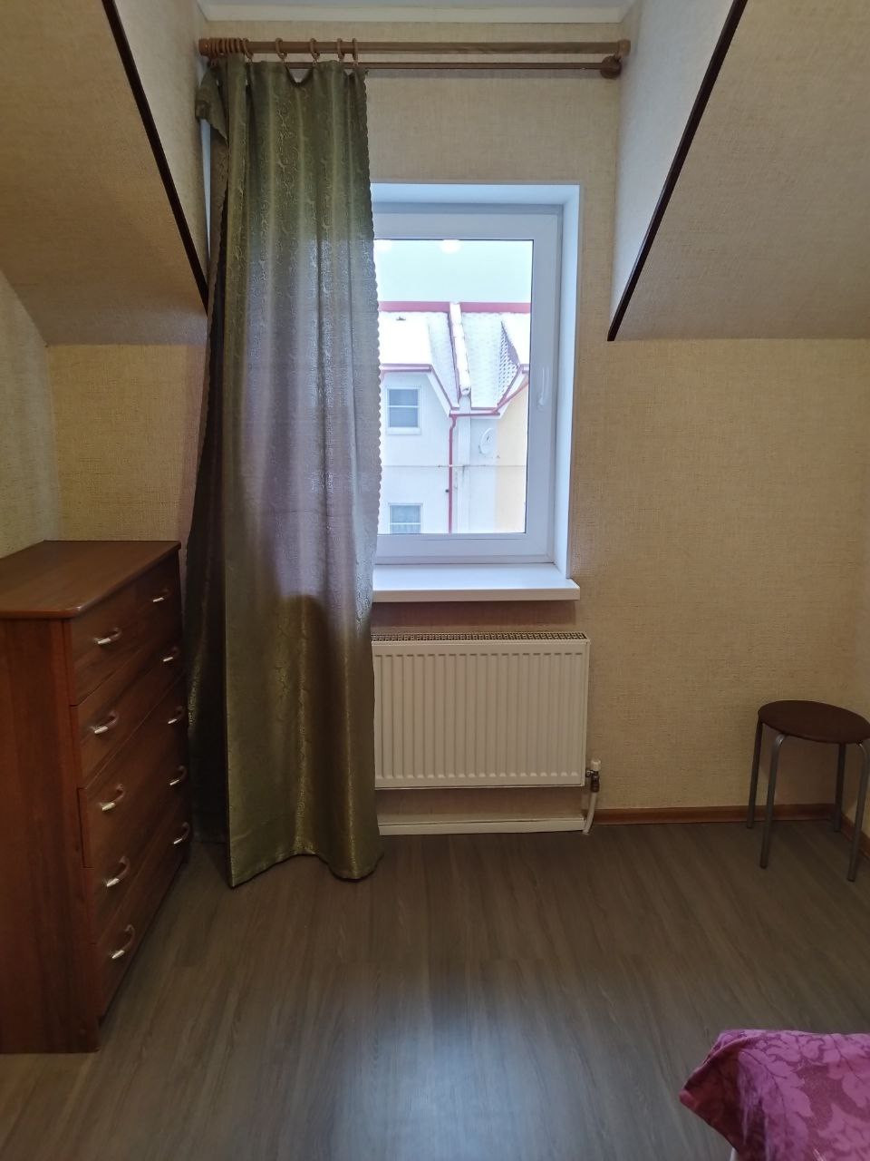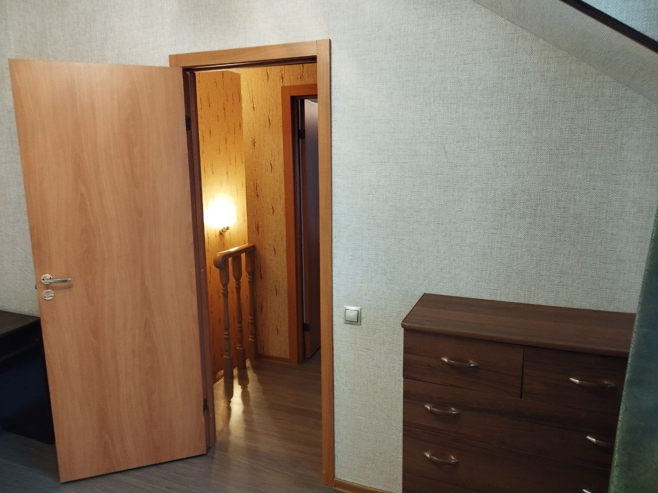 Есть выход на чердак и есть кладовка (которую можно использовать как гардеробную).