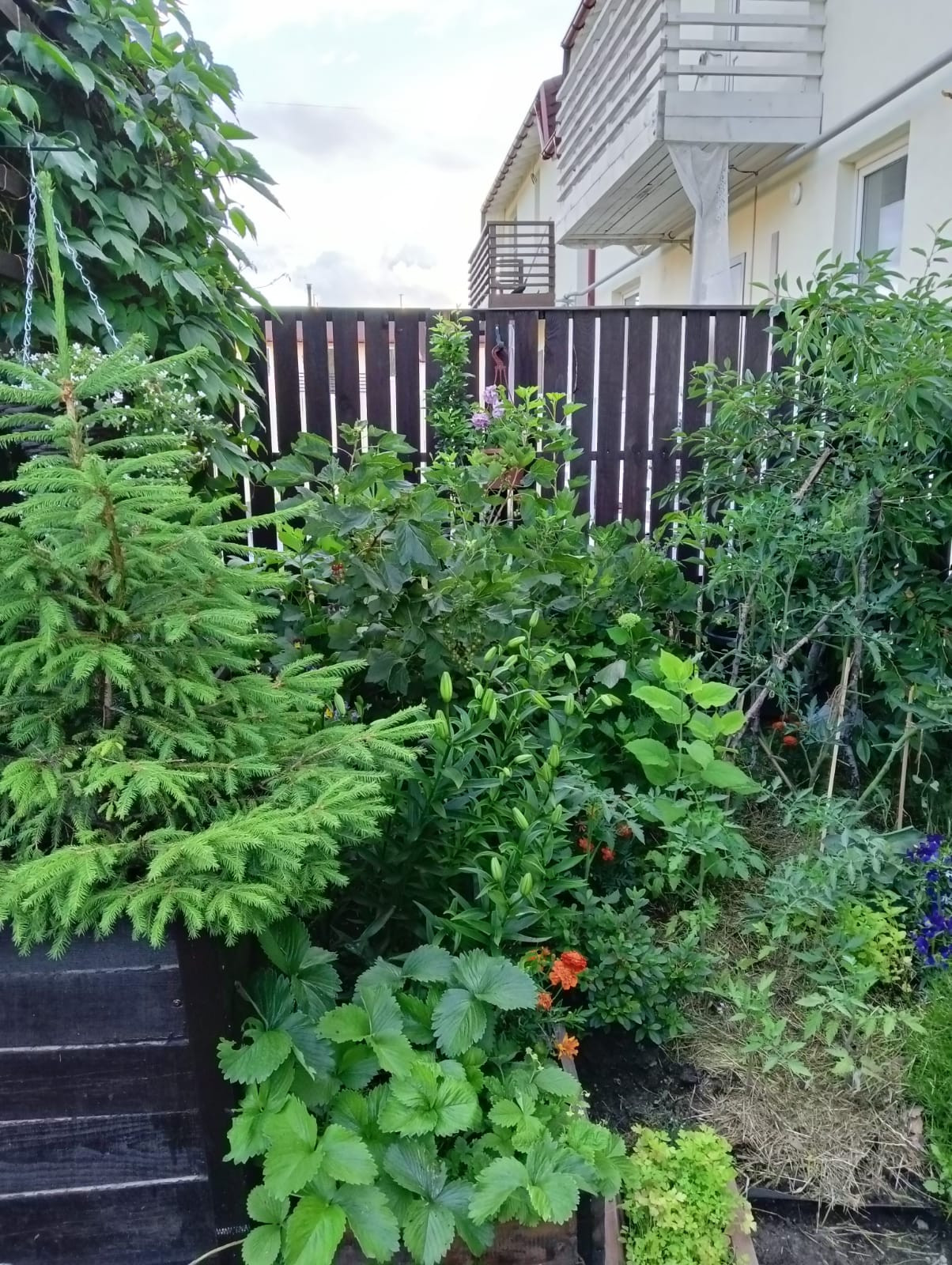 Участок огорожен забором с воротами.