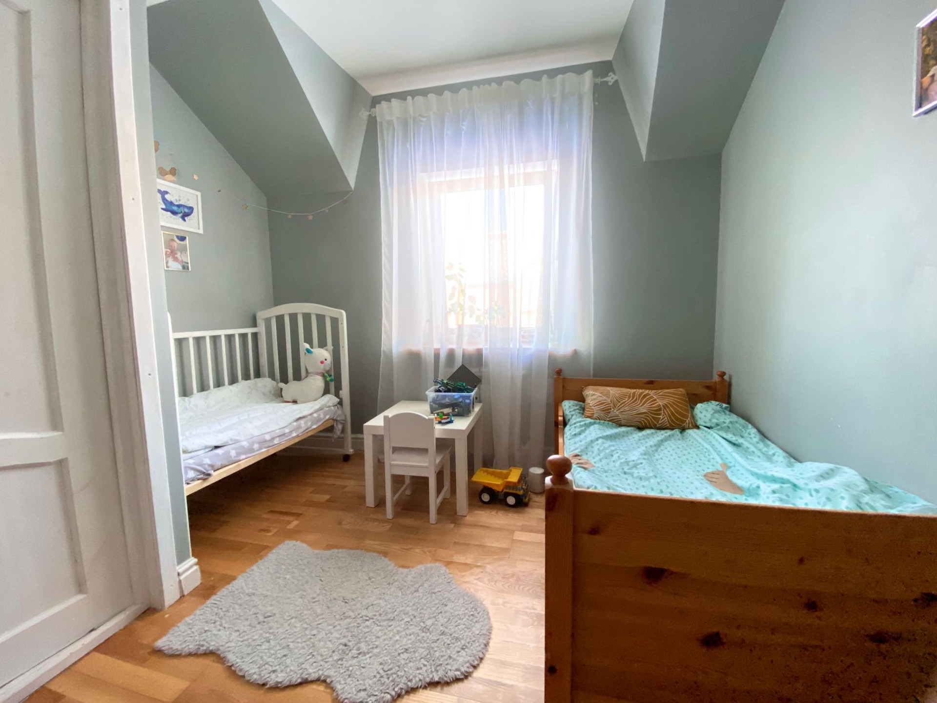 - Комнаты: 3 жилые комнаты, 1 санузел, кладовая, утепленный чердак (+20 кв.м под хранение), гардеробная, веранда
