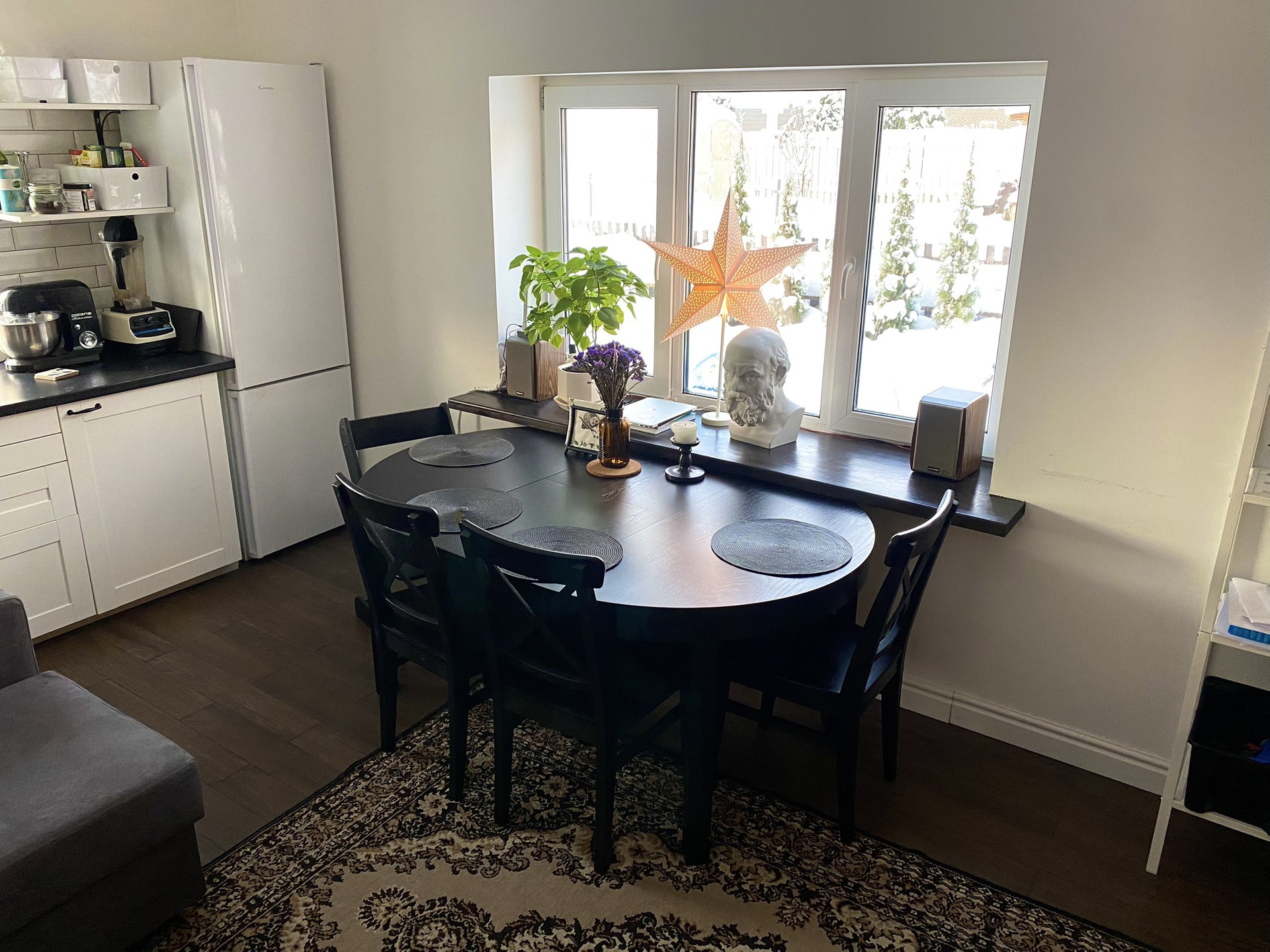 - Тёплые полы на всей площади 1 этажа. Хороший ремонт, качественные материалы. Ремонт сделан 7 лет назад, есть небольшие следы эксплуатациии. Про переезде остаётся кухня Ikea.