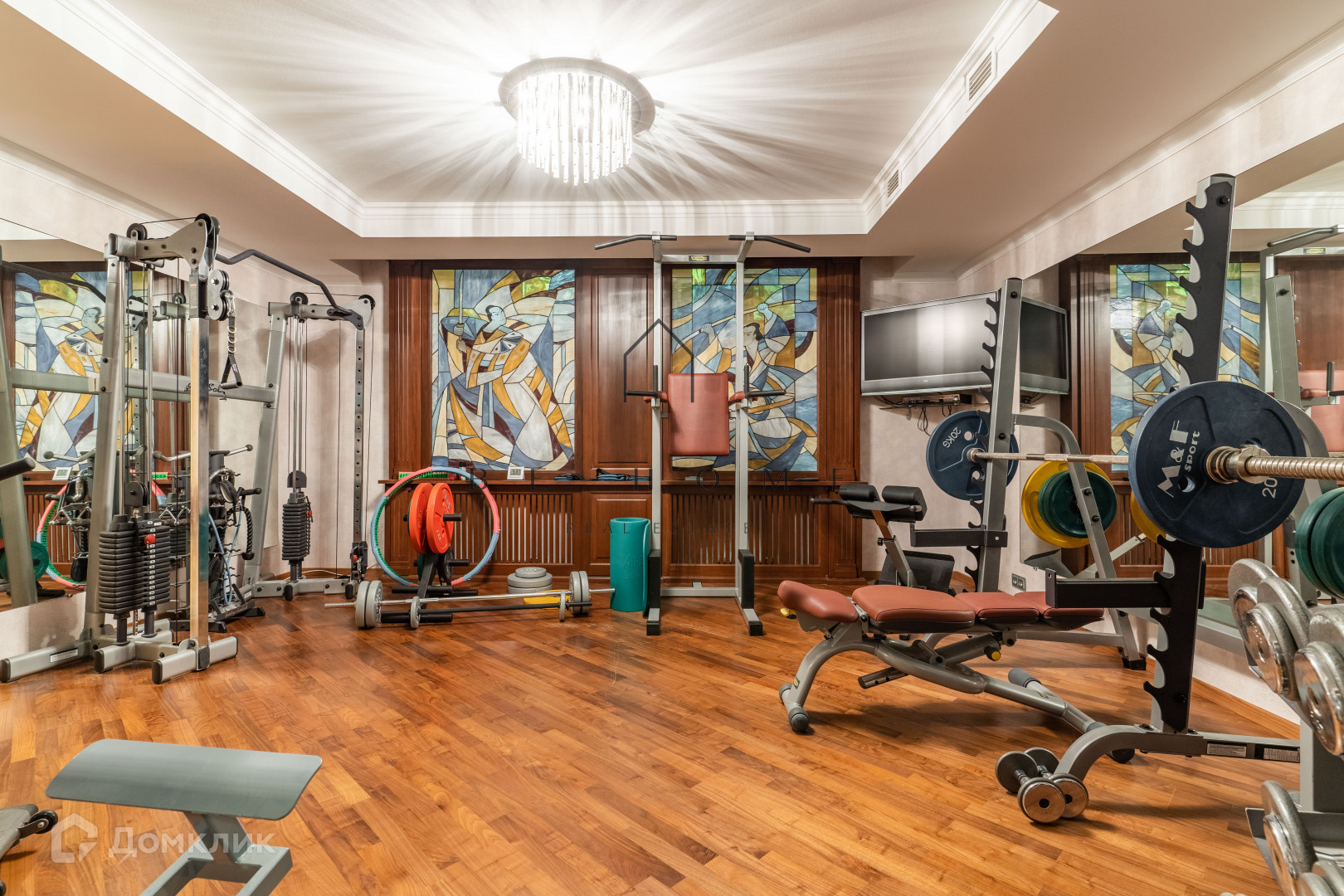 Цокольный этаж: бильярдная. Спортзал. Сауна. Совмещённая ванная комната. Отдельная постирочная комната.