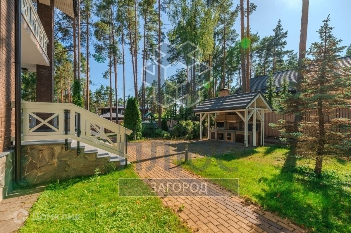 · На участке 20 соток высажены деревья, сохранены вековые сосны. В их природный ландшафт органично вписалась необходимая инфраструктура в виде мощеных дорожек, гаражного комплекса, детской площадкой и летней кухни.
