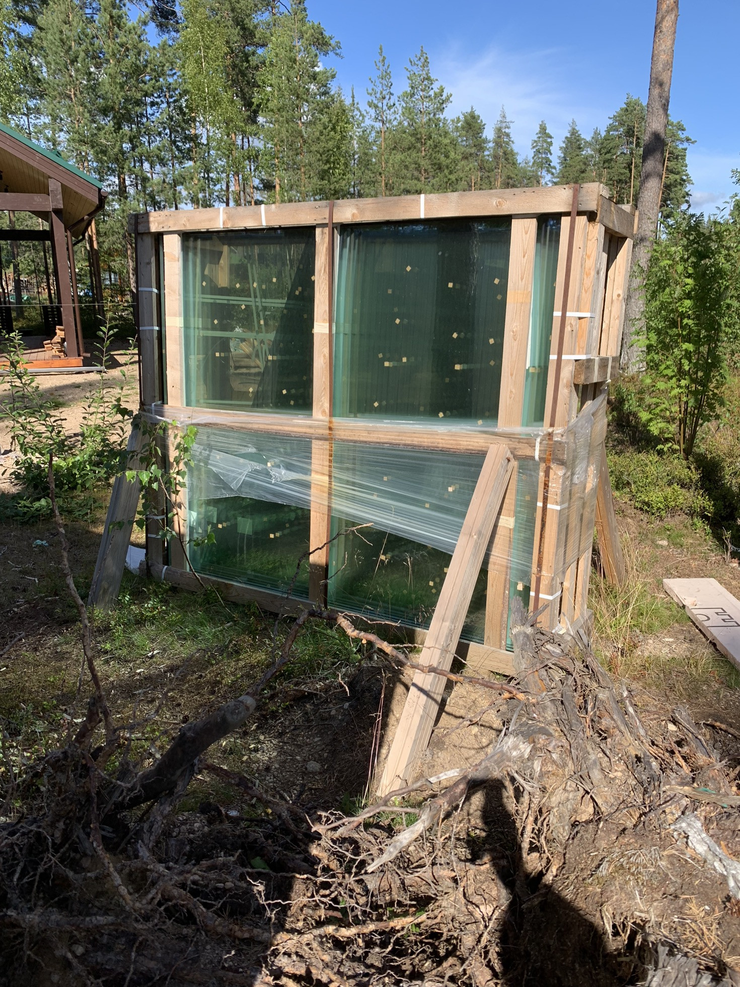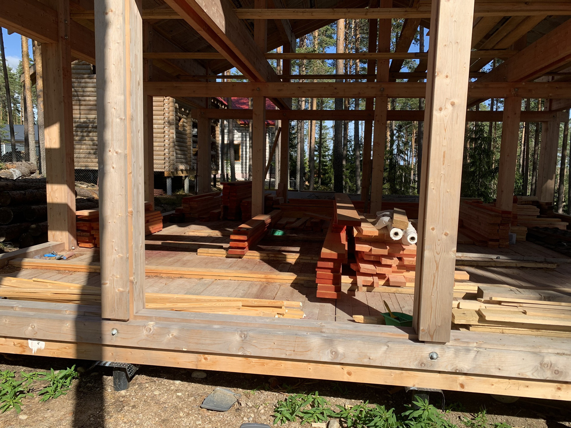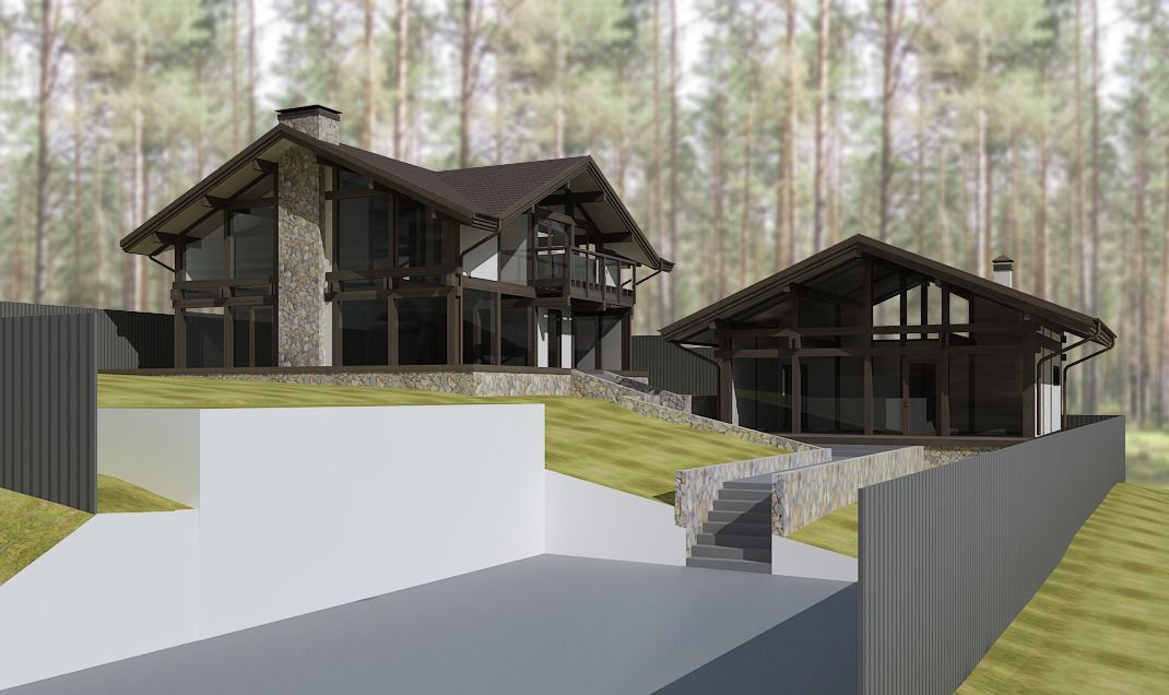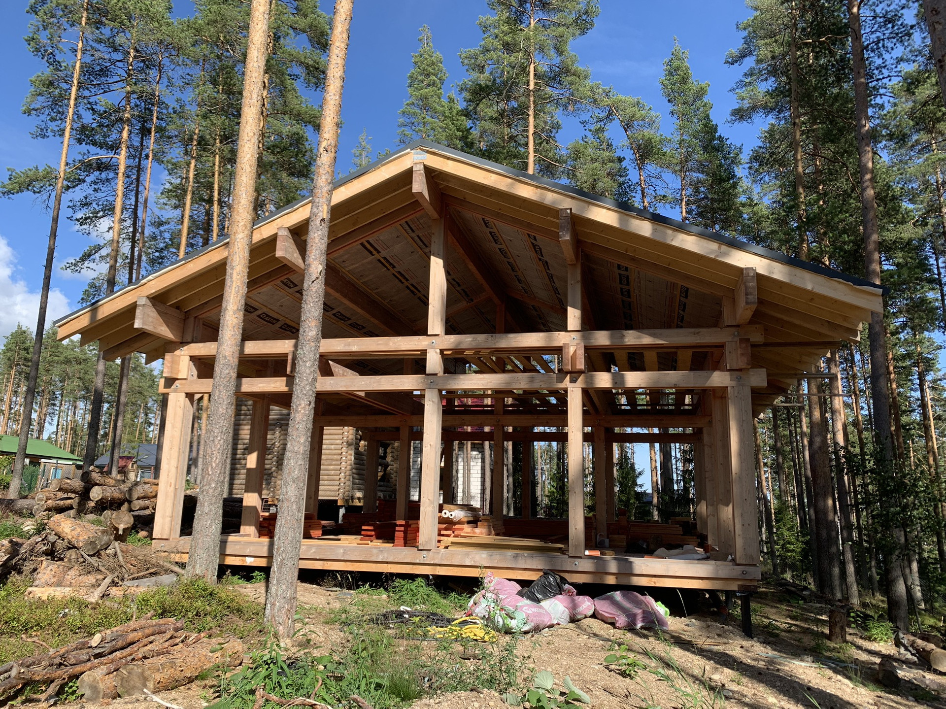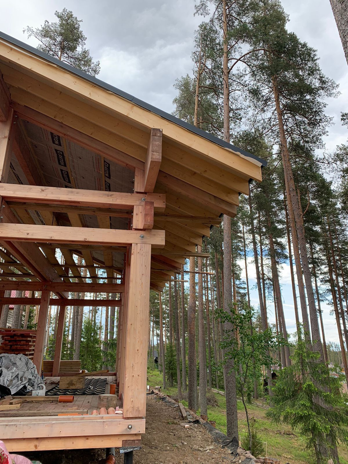 5. Каркас дома фахверк из клеевого бруса с окнами и крышей (Цвет крыши ral7016).