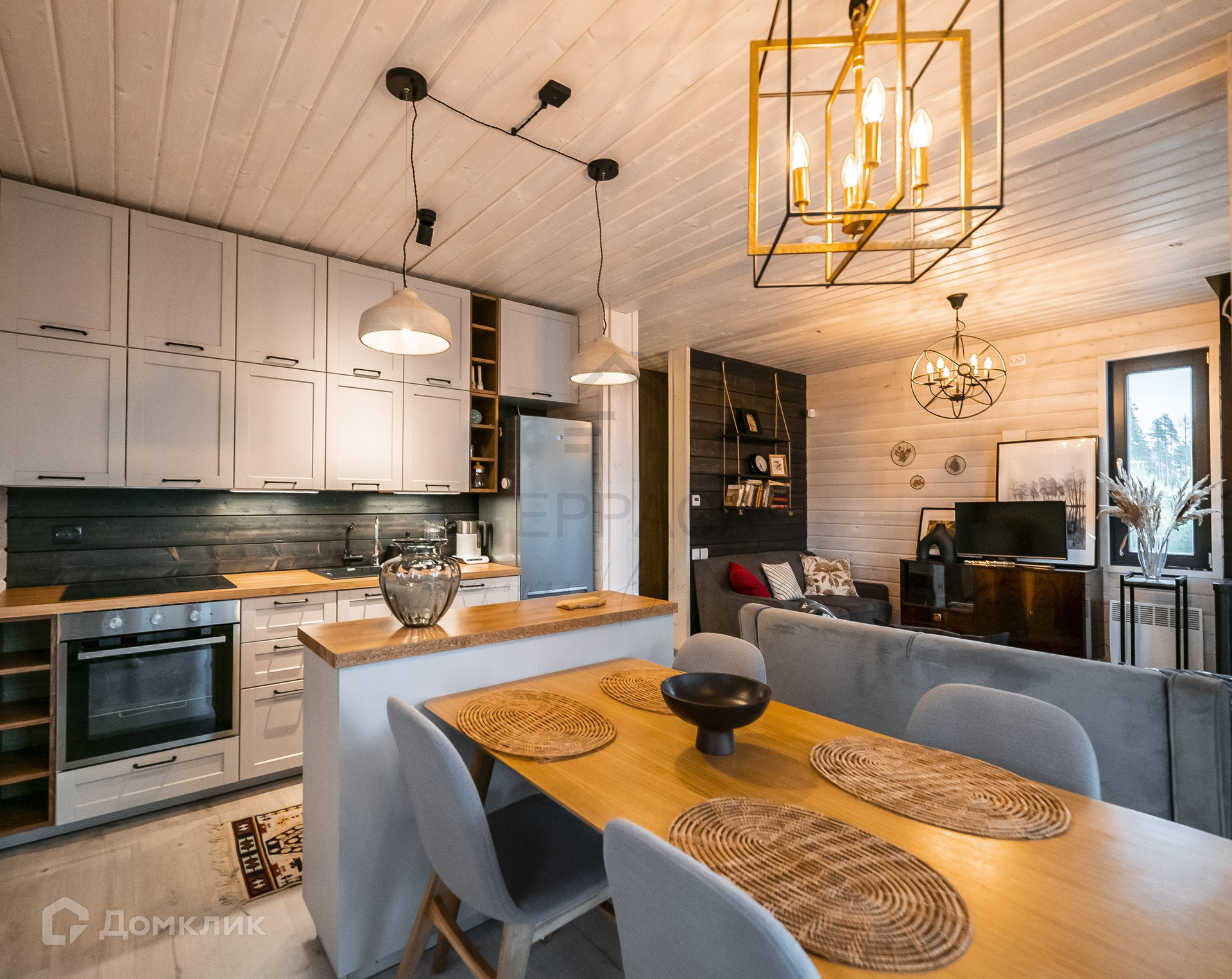 1 этаж – терраса, прихожая, укомплектованная кухня и обеденная зона, гостиная, с/у.