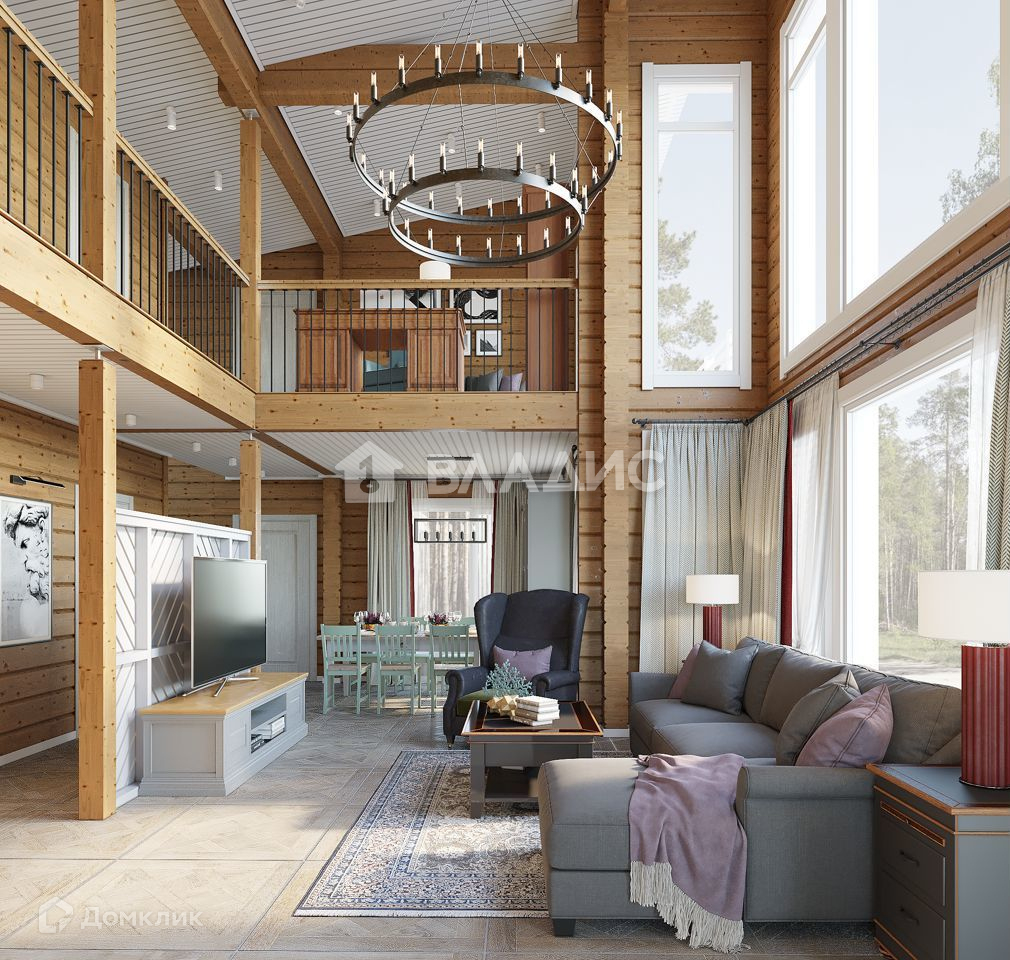 -просторная гостиная-столовая с зоной второго света (44,48 м2)