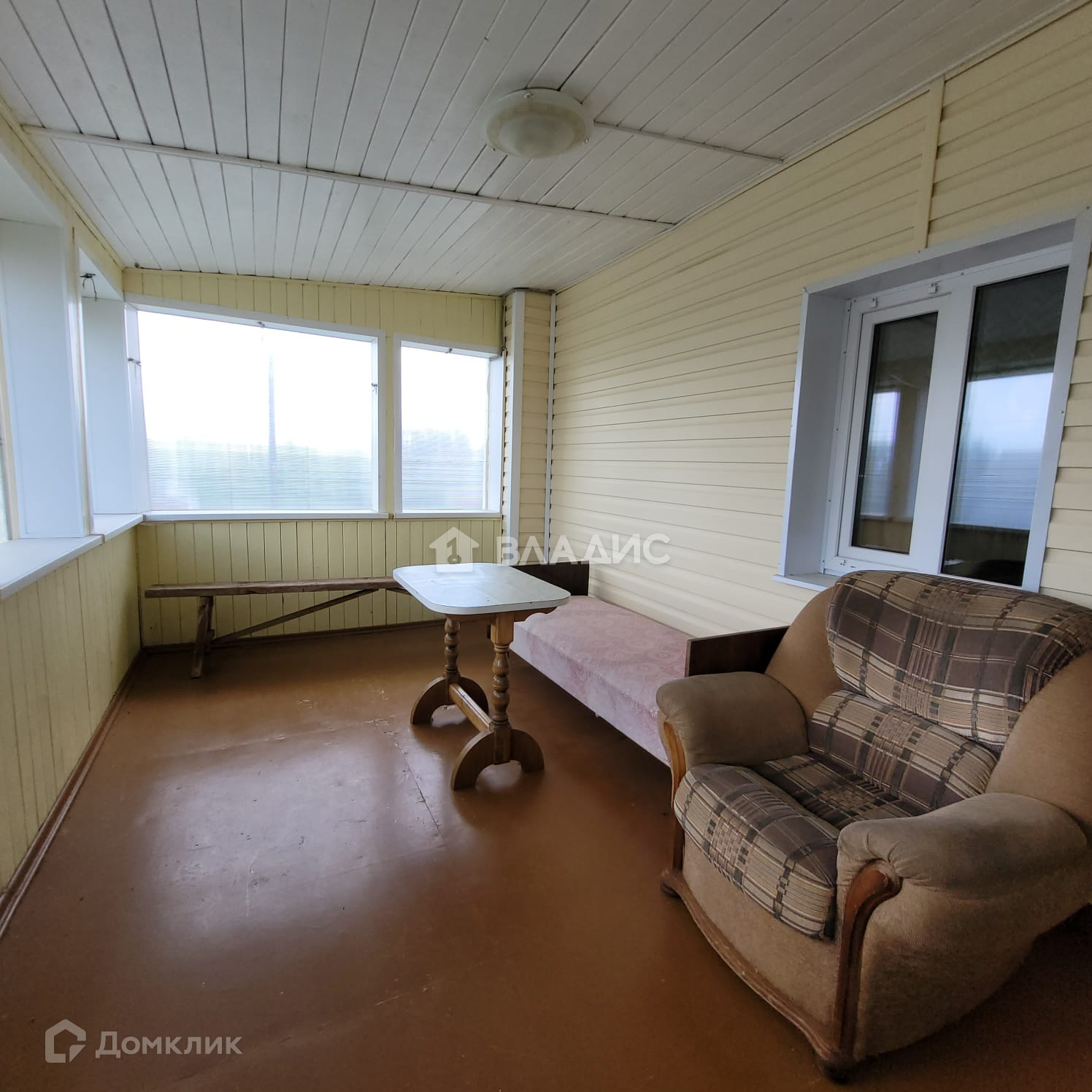 - Материал стен — бревно, обшит сайдингом