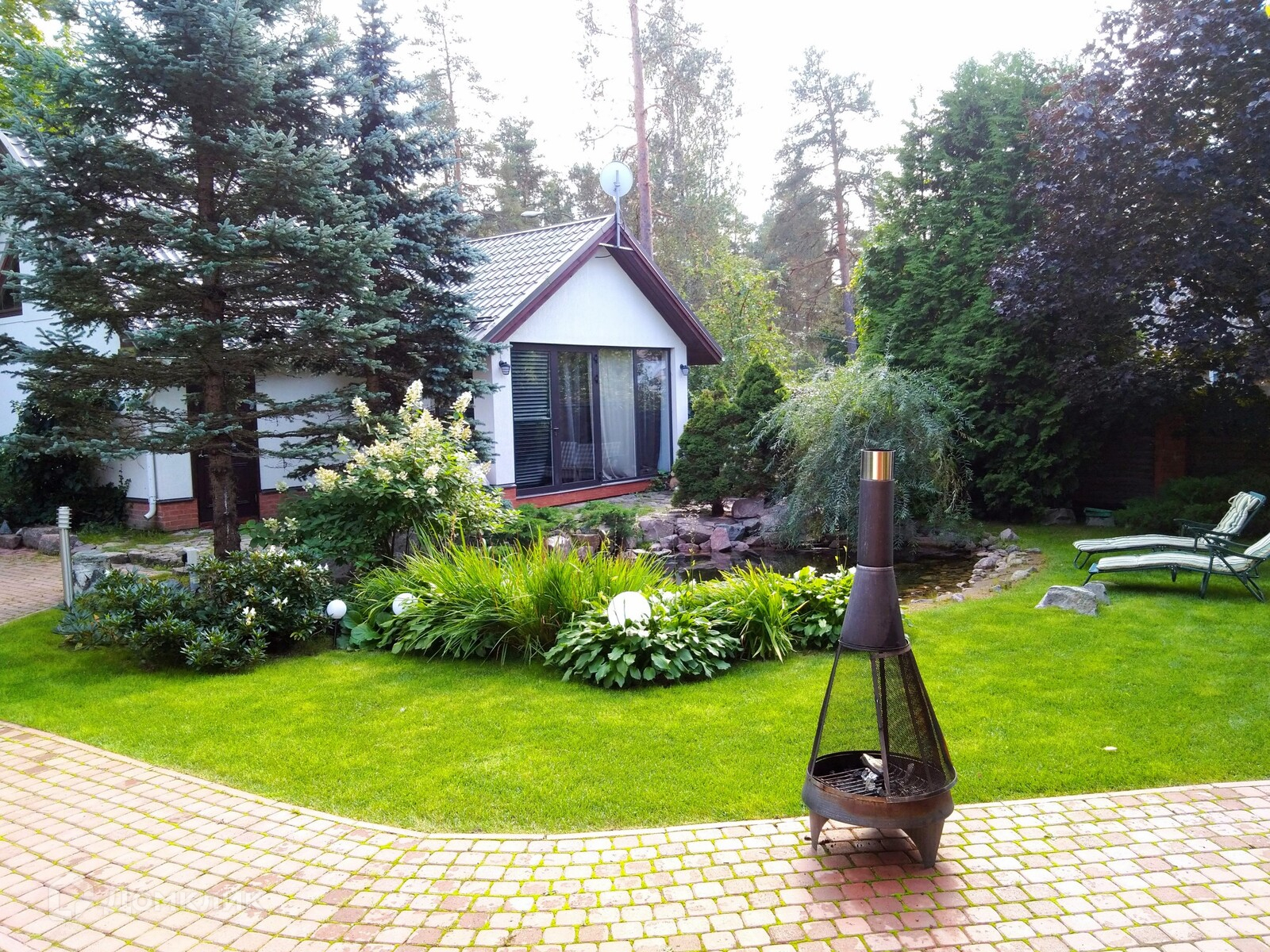 УЧАСТОК: полностью благоустроен (ландшафтный дизайн), подсветка , искусственный декоративный пруд ,альпийская горка, гранитное патио, рулонный газон, мощеные дорожки, взрослые деревья и кустарники. Участок расположен на песчаном грунте (по геодезии - толщина песчаного слоя 8 метров).