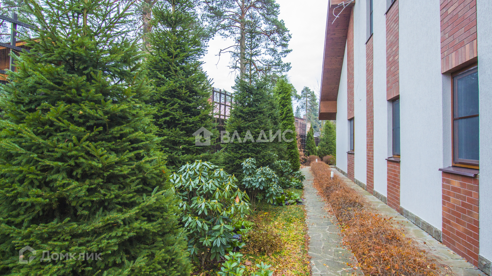Участок щедро засажен прекрасными деревьями различных хвойных видов, создавая атмосферу гармонии с природой.