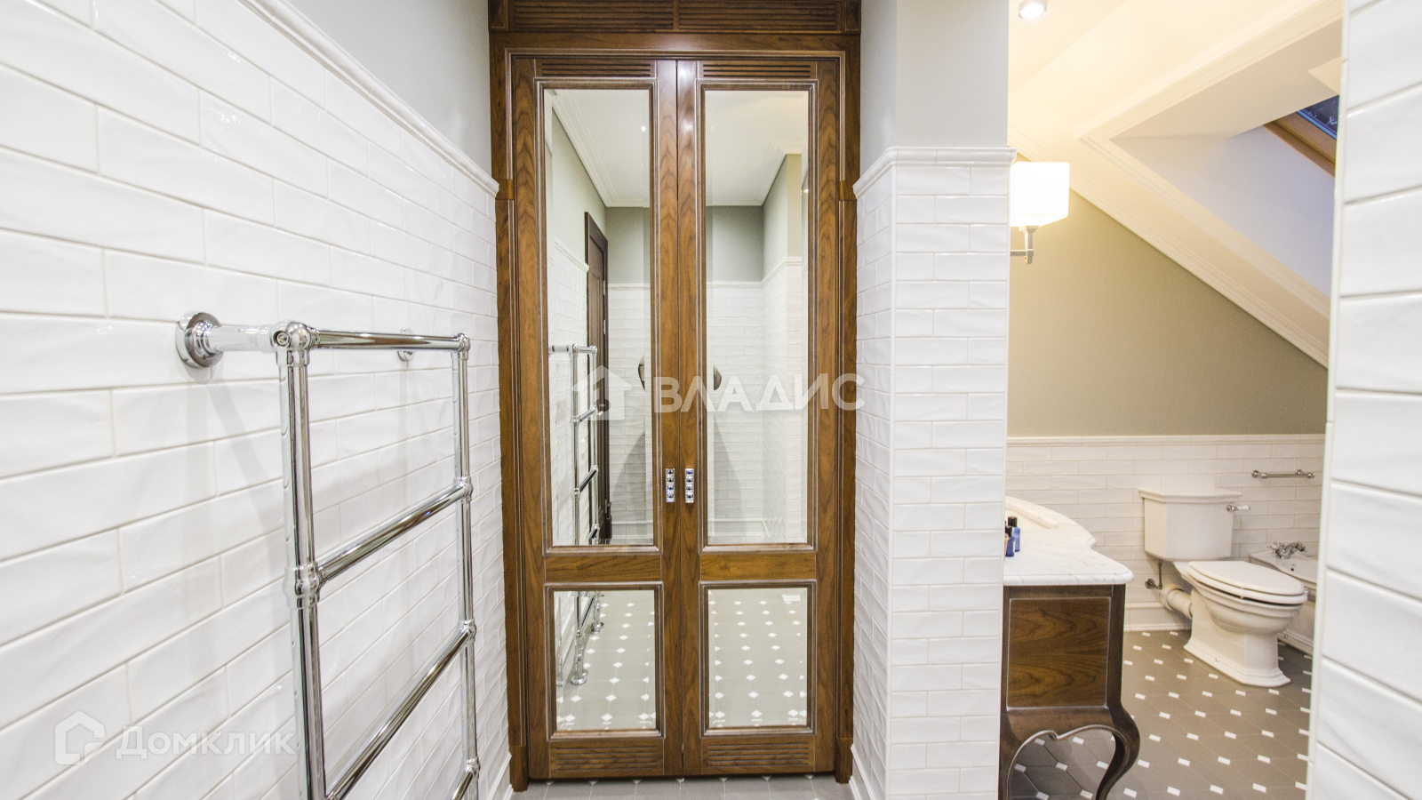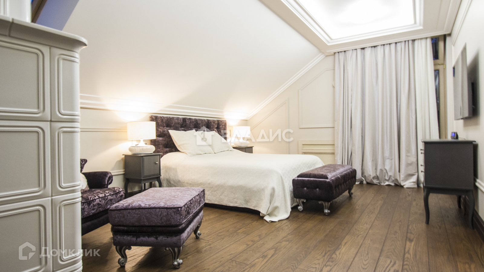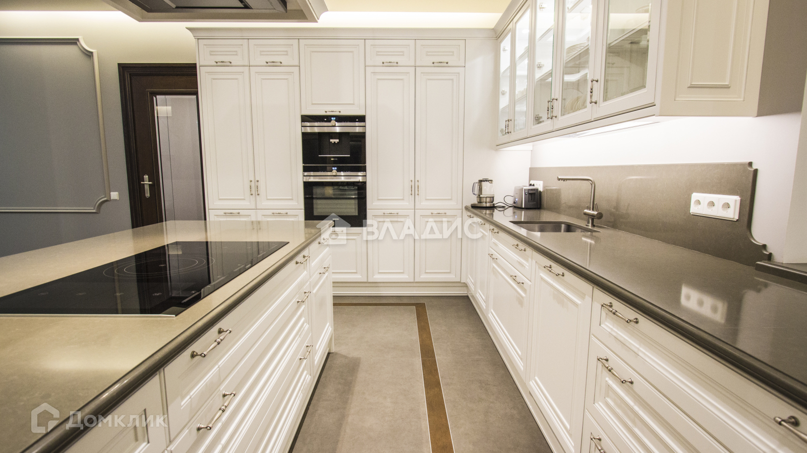 Элегантные детали отделки, такие как высокие потолки и лепнина, подчеркивают неоклассический стиль, создавая ощущение роскоши.