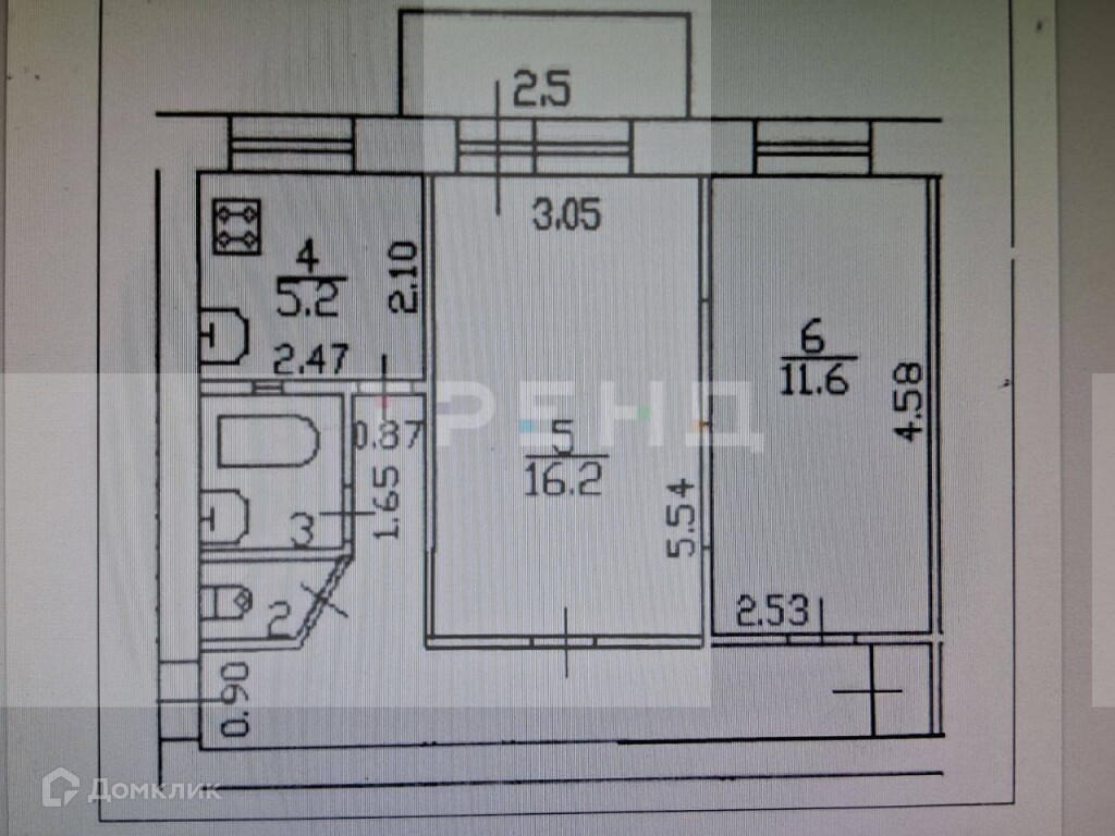 Общая площадь 43.8 м2