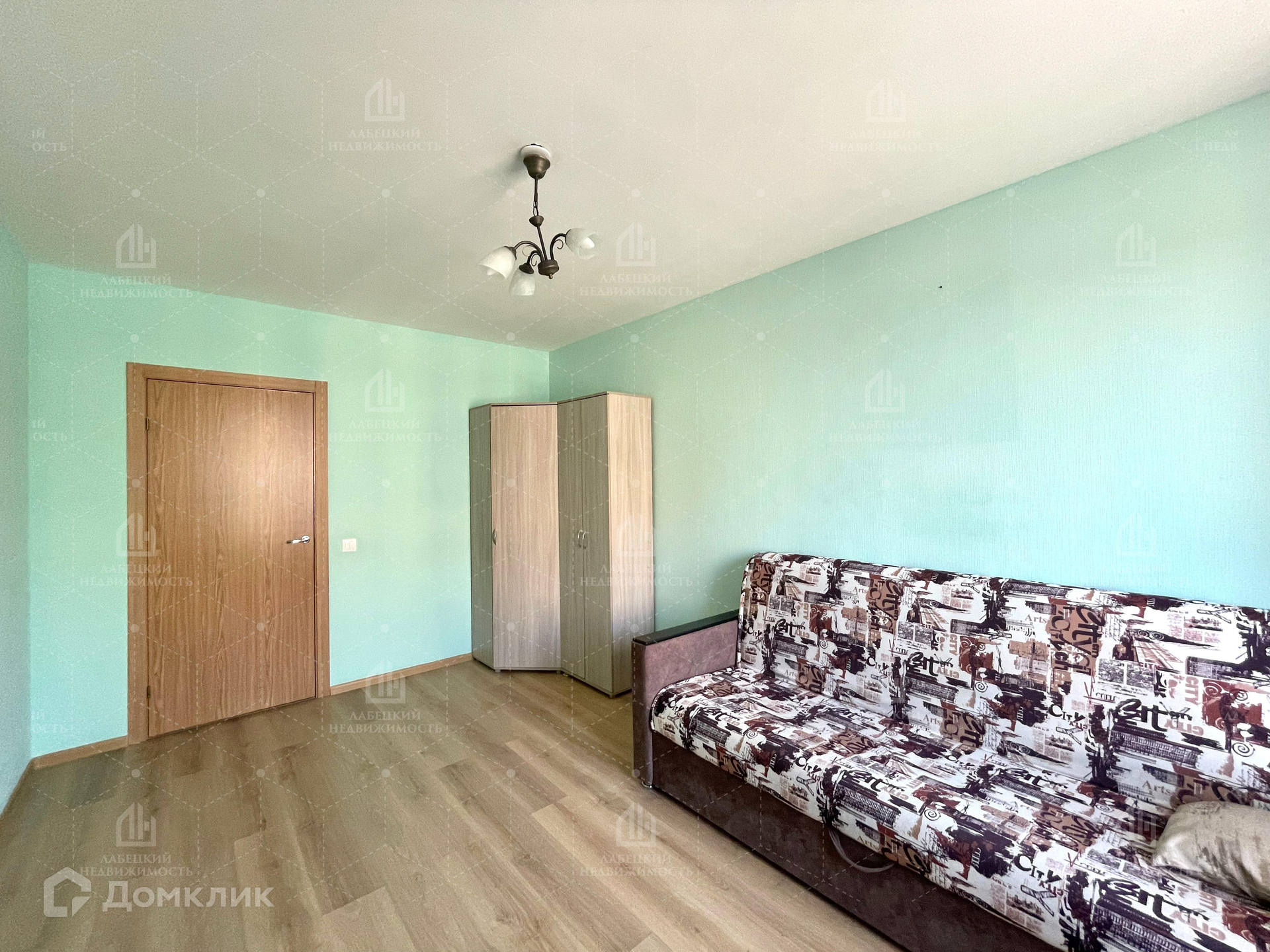 - Одна ИЗОЛИРОВАННАЯ комната (14,6 м²) с диваном и полочками, где можно грамотно разместить вещи и предметы интерьера