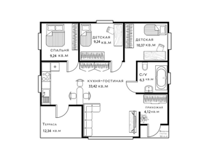 Общая площадь: 94.3 м2