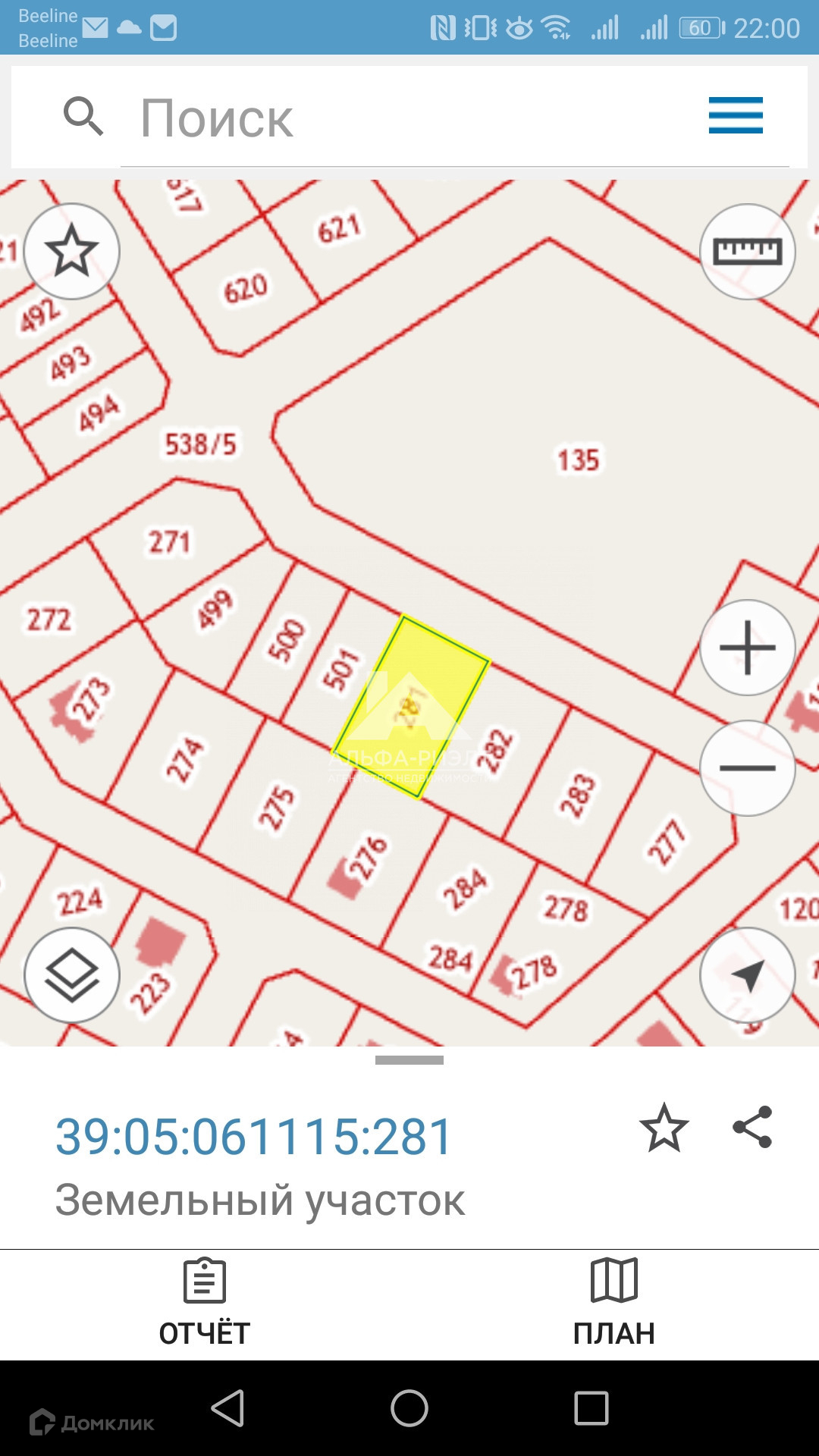 Кадастровый номер: 39:05:061115:281