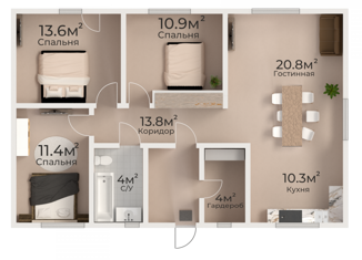 Общая площадь: 136 м2