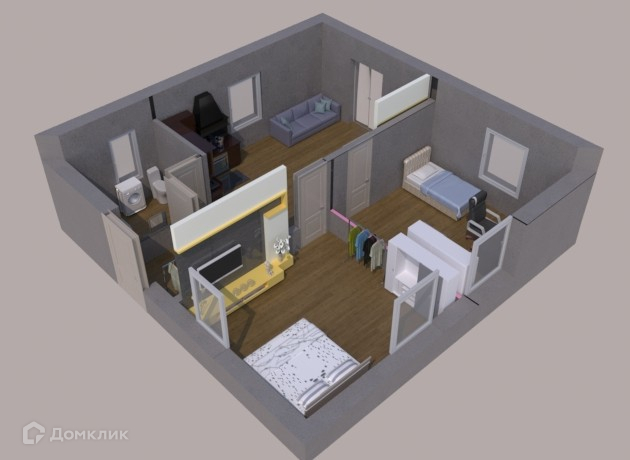 Отличная планировка: кухня-студия +2 спальни!