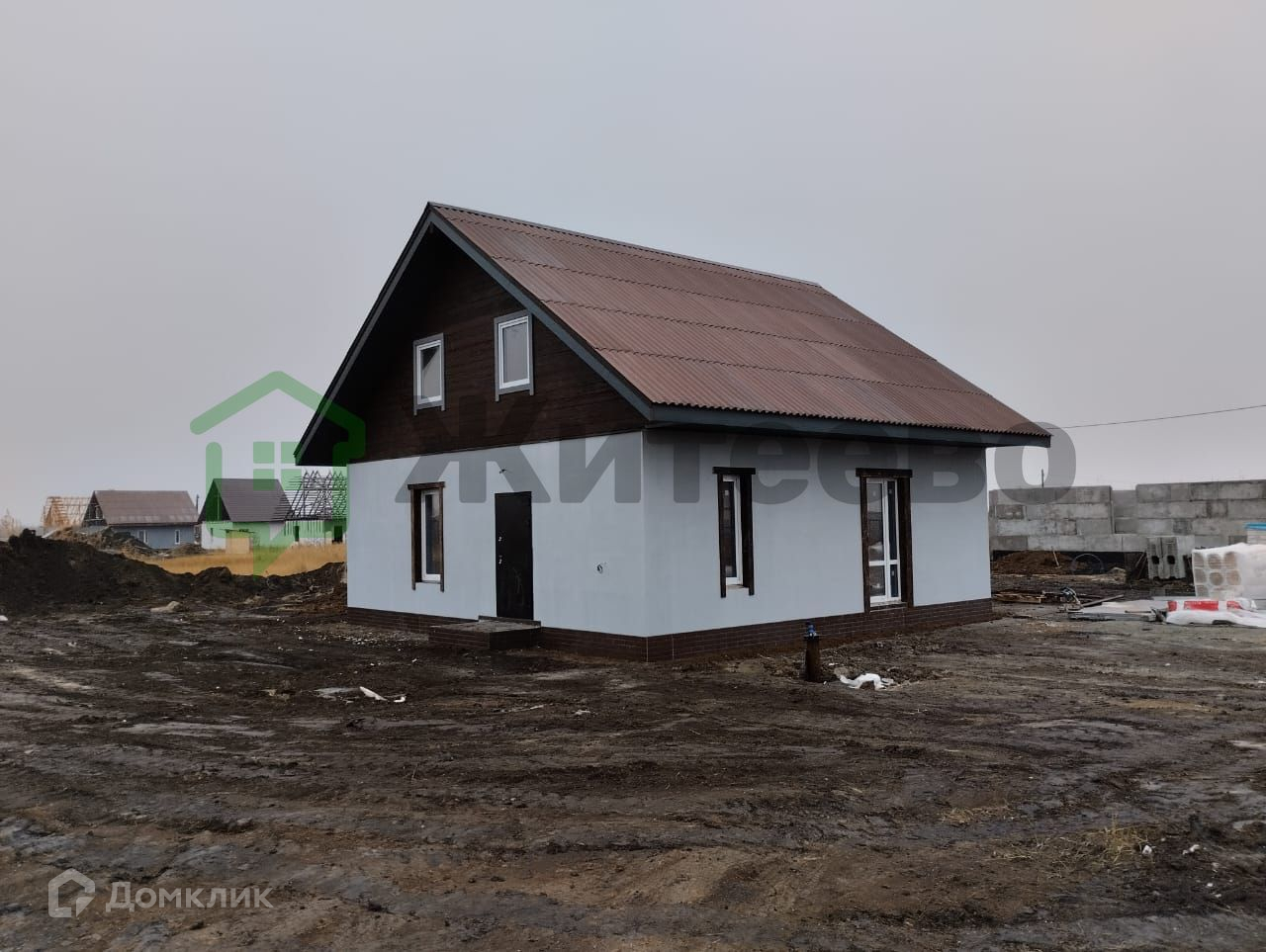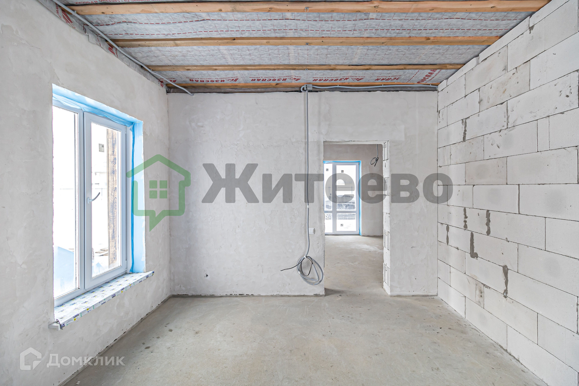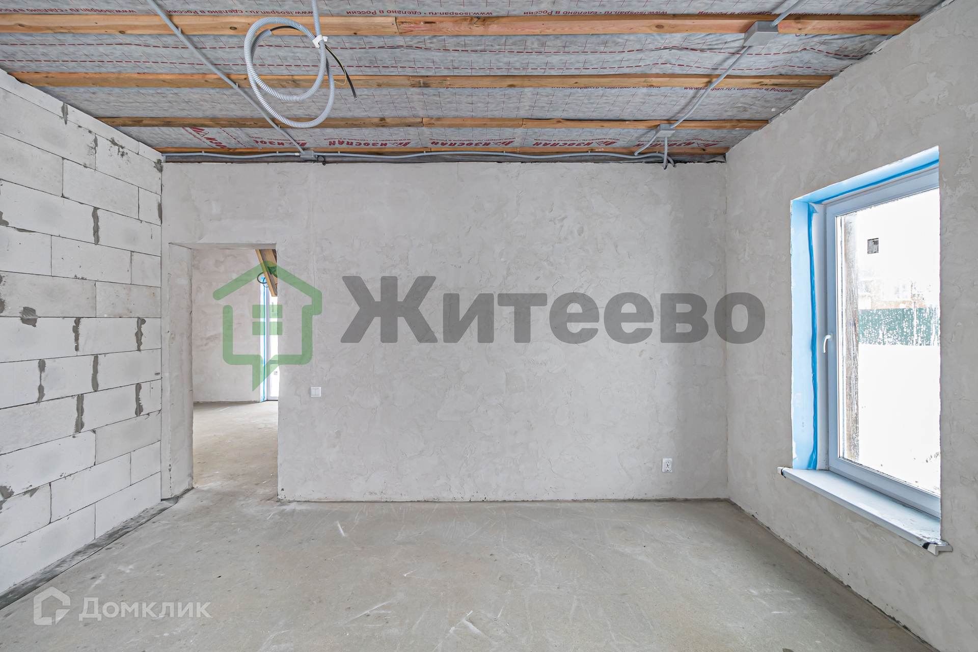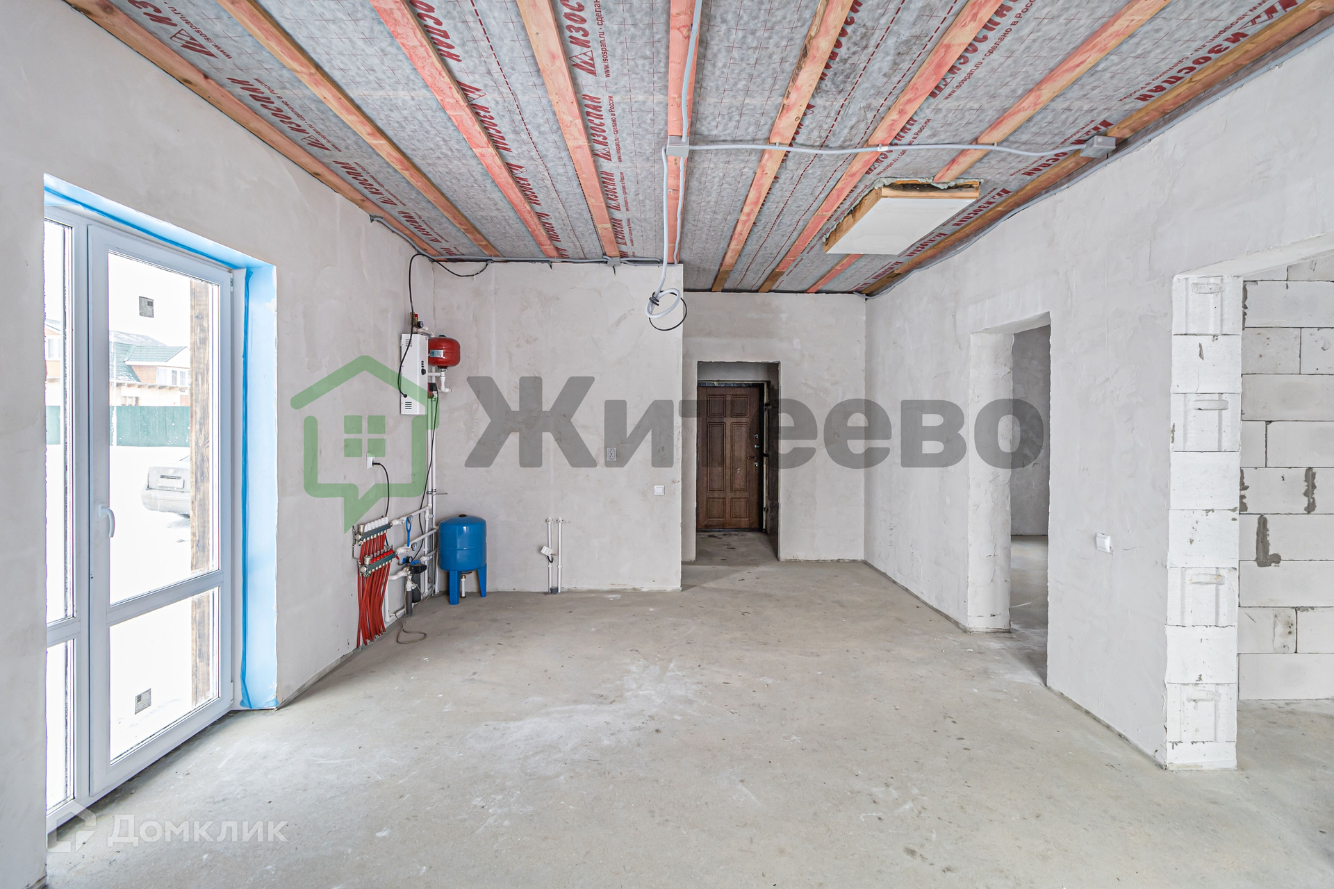 Дом оборудован всеми необходимыми коммуникациями, в том числе электричеством, водяным тёплым полом по всему дому, насосом и электрокотлом. Внутренняя отделка частично завершена, стены оштукатурены, полы выполнены из полусухой стяжки.