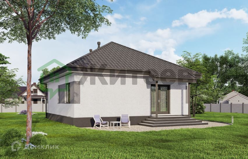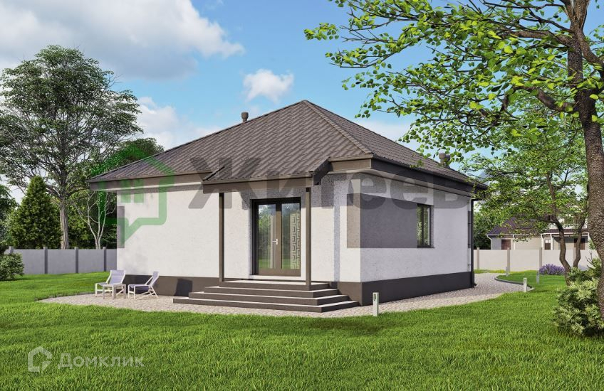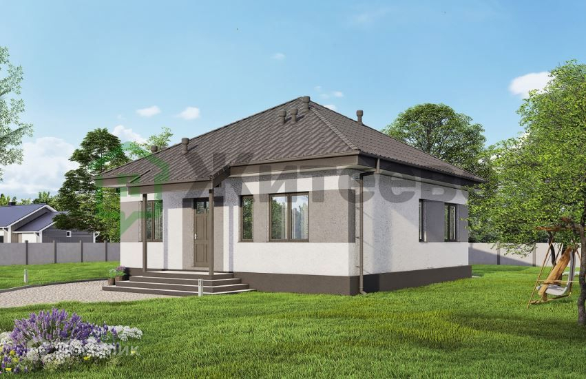 Дом имеет общую площадь 70 м2 и две просторные спальни площадью 12,2 м2 и 10.7м2. Фундамент свайно-ростверковый. Стены из газоблоков 300мм с утеплением 100 мм, обеспечивают отсутствие мостиков холода. Шумо и теплоизоляция дома на высоком уровне, что делает его очень тёплым. Кровля выполнена из металлочерепицы.