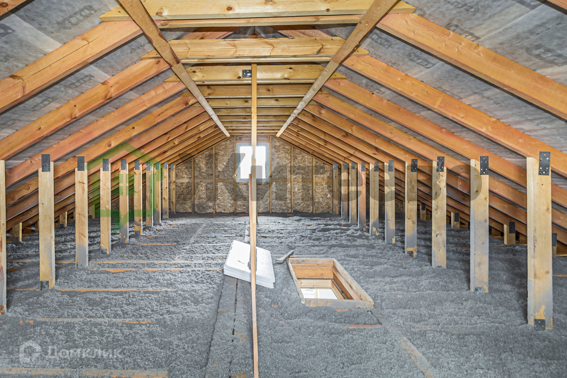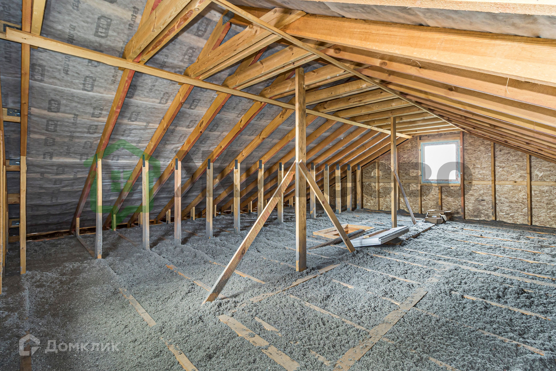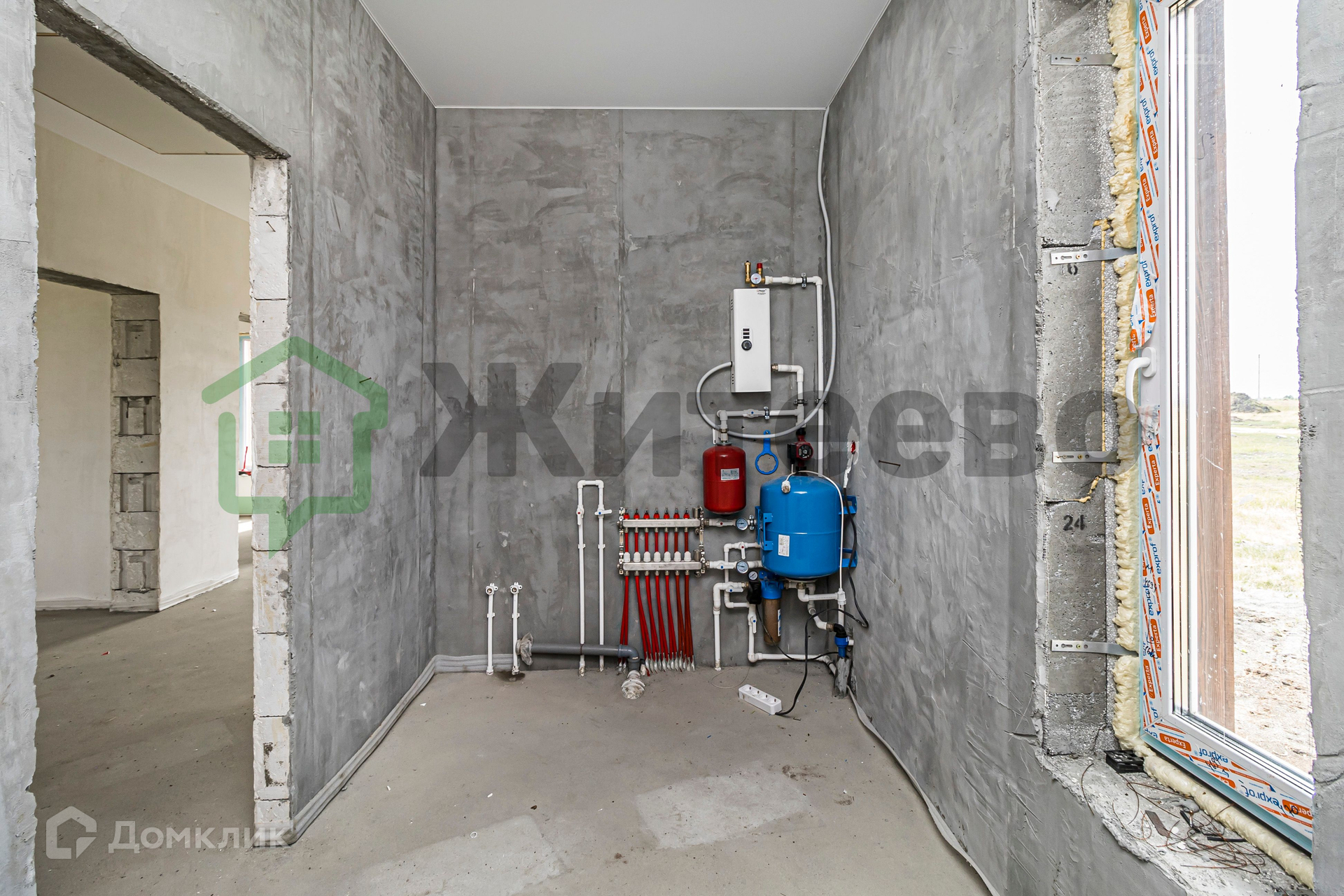 Дом оборудован всеми необходимыми коммуникациями, в том числе электричеством, водяным тёплым полом по всему дому, насосом и электрокотлом. Внутренняя отделка частично завершена, стены оштукатурены, полы выполнены из полусухой стяжки.
