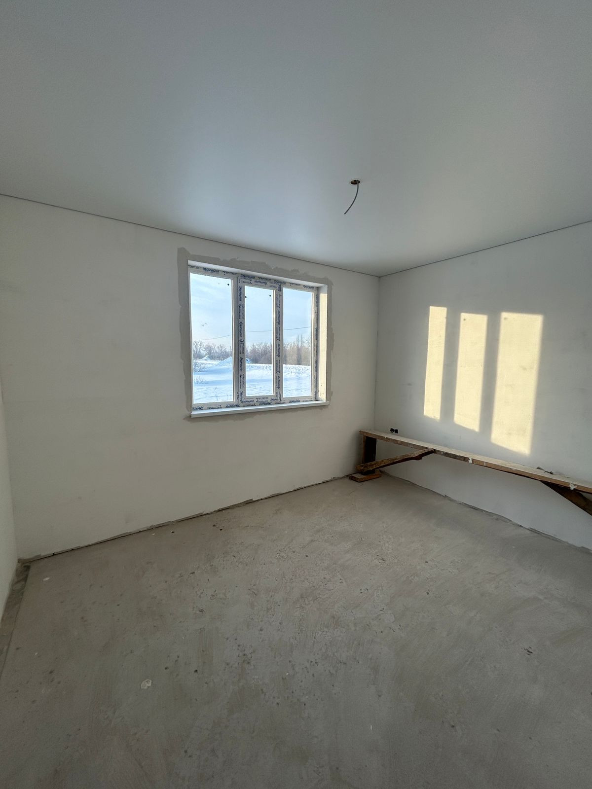 Стены оштукатурены, подготовлены под обои/окрашивание.