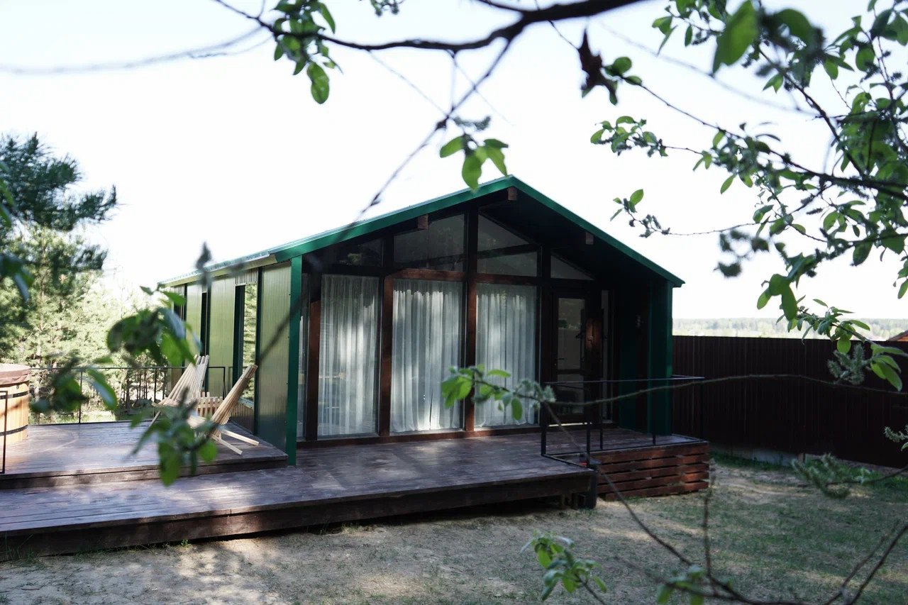 В представленном доме имеются две комнаты, огромная кухня-гостиная с панорамными окнами, санузел с душевой кабинкой. Кроме того, наличие крыльца-веранды позволяет насладиться свежим воздухом и прекрасным видом.