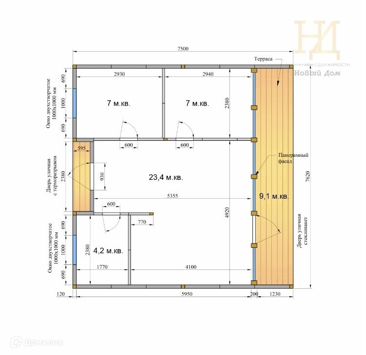 Представлен дом площадью 57 кв.м., в котором просторная кухня-гостиная и 2 спальни!!!