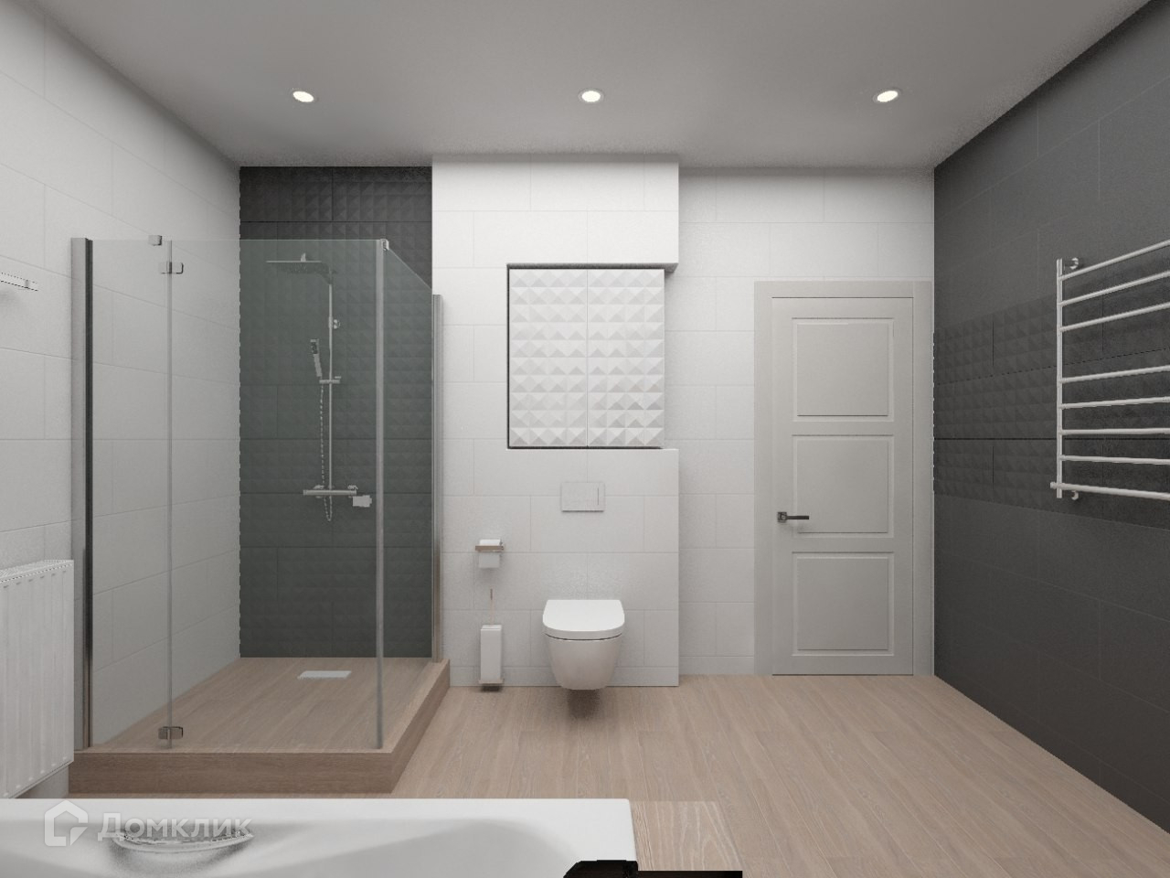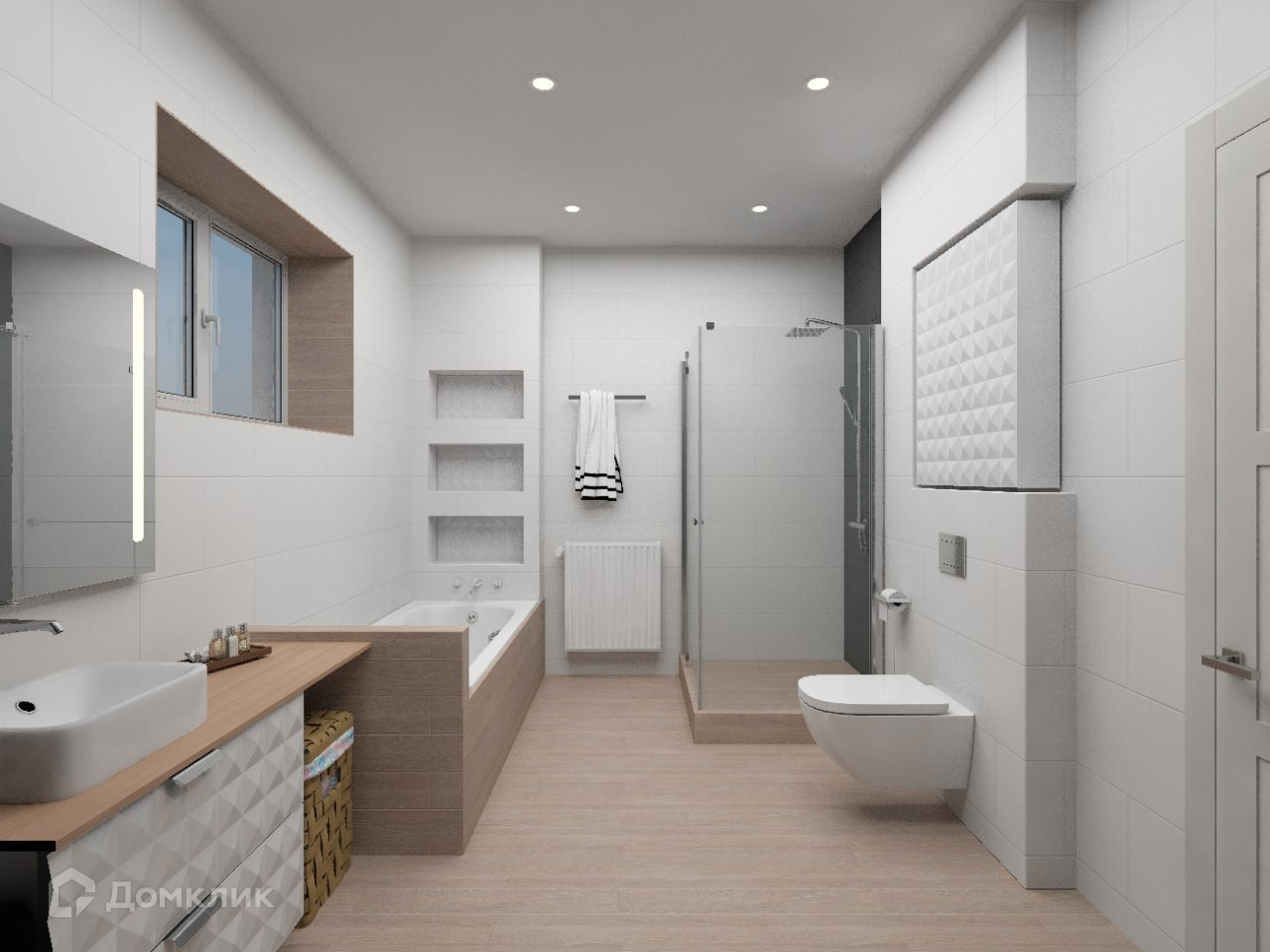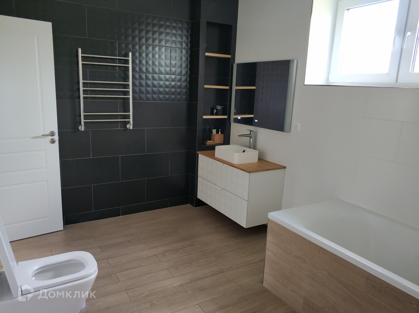 В доме – большая студийная зона кухни-гостиной (64,5) кв.м., три спальни (17,2+17,6+ 11, 6 кв.м.), ванная комната(10,8 кв.м.), бойлерная и мансардный этаж (78,5 кв.м.).
