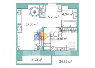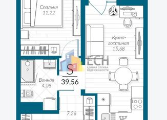 Продажа однокомнатной квартиры, 39.56 м2, Центральная улица, 3.1