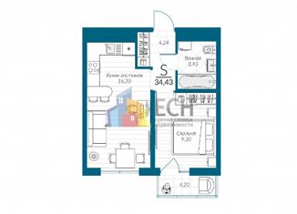 Продажа 1-комнатной квартиры, 34.43 м2, Центральная улица, 3
