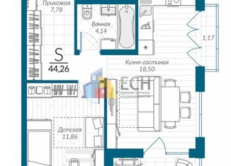 Продаю 1-комнатную квартиру, 44.26 м2, Центральная улица, 3.1