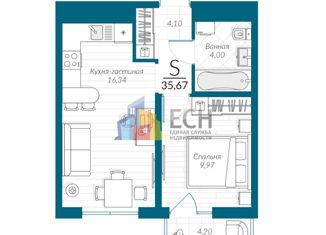 Продажа 1-комнатной квартиры, 35.67 м2, Центральная улица, 3