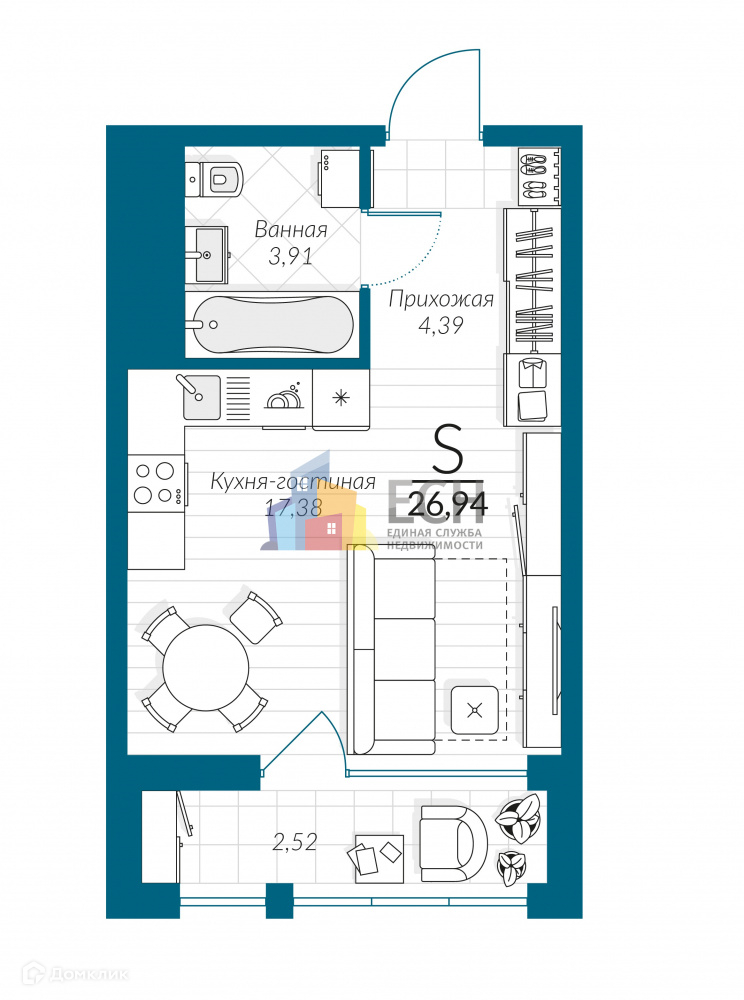 Общая площадь 26.95 м2