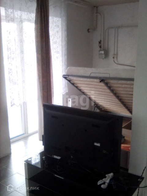 Окна в пол на балконе и в комнате. Есть двуспальная кровать с подъемным механизмом. Котловая со стиральной машиной и котлом, TV Сони Бравиа, заведен проводной интернет.