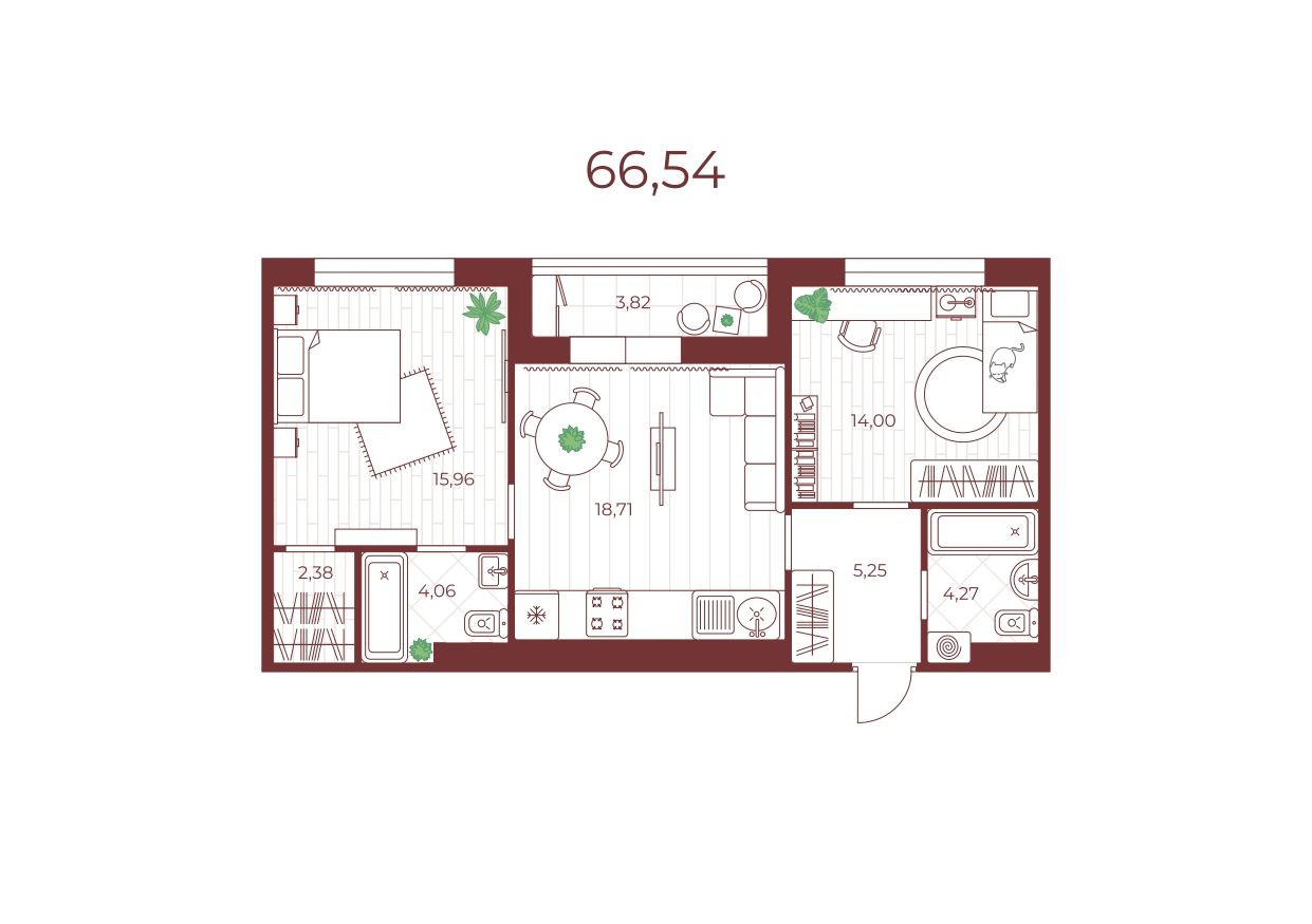Общая площадь 66.54 м2