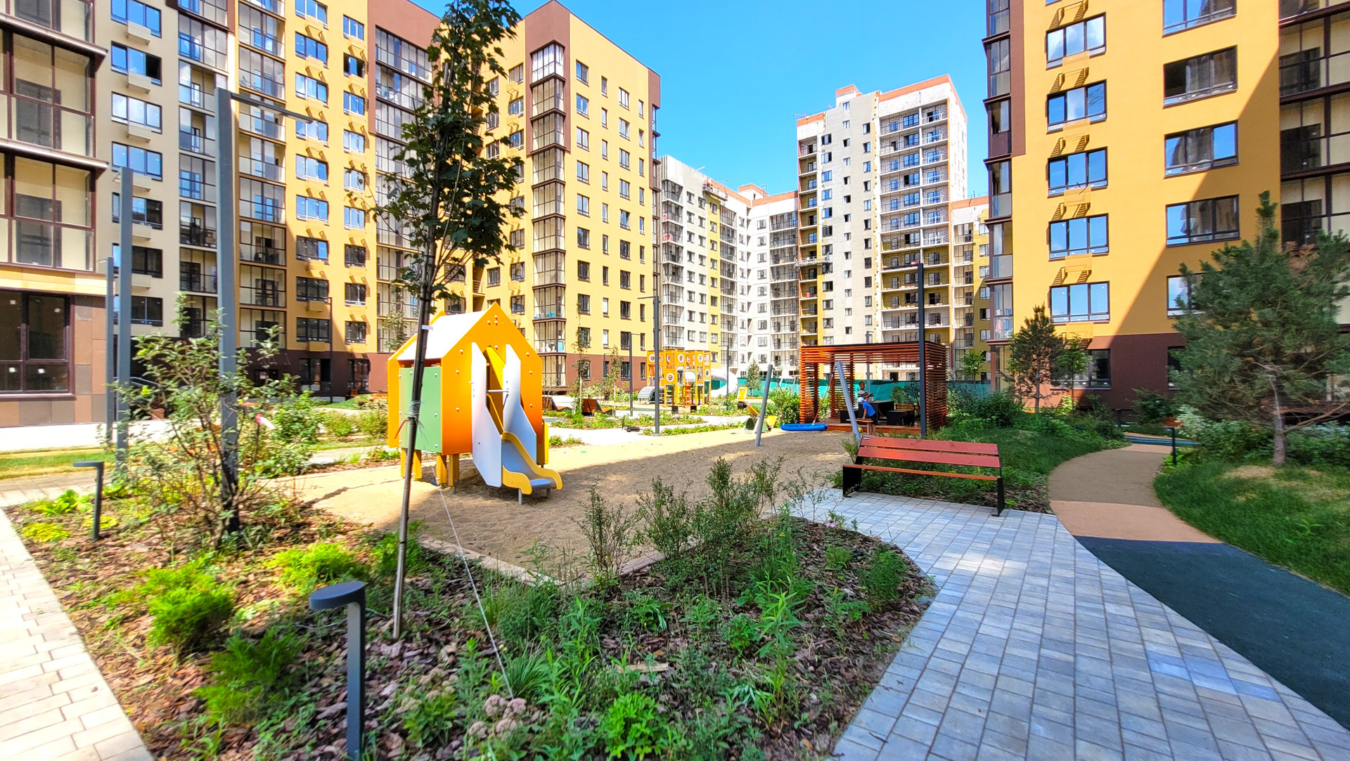 ЖК Притяжение - это цветущий город-сад с деревьями и зелеными газонами, современными детскими, спортивными площадками и собственной инфраструктурой