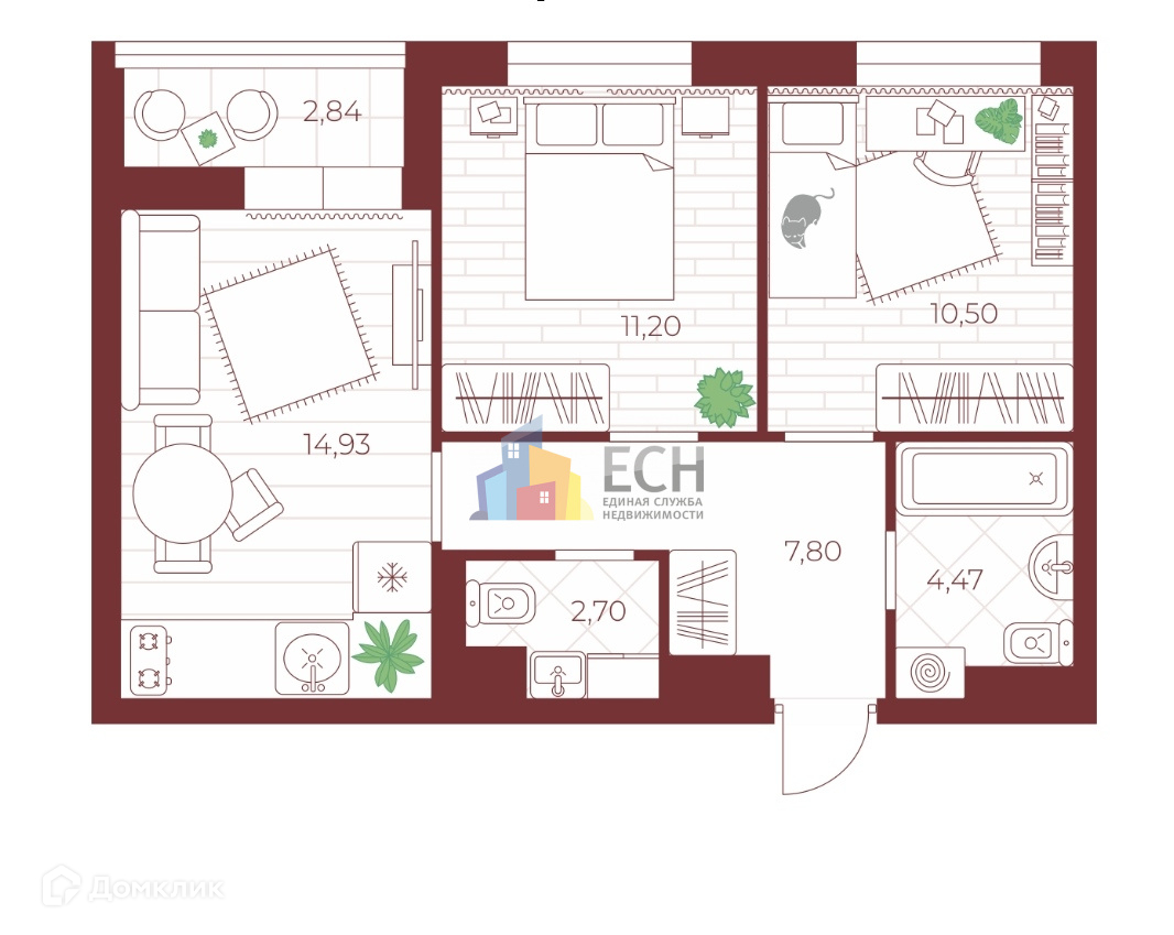Общая площадь 53.02 м2