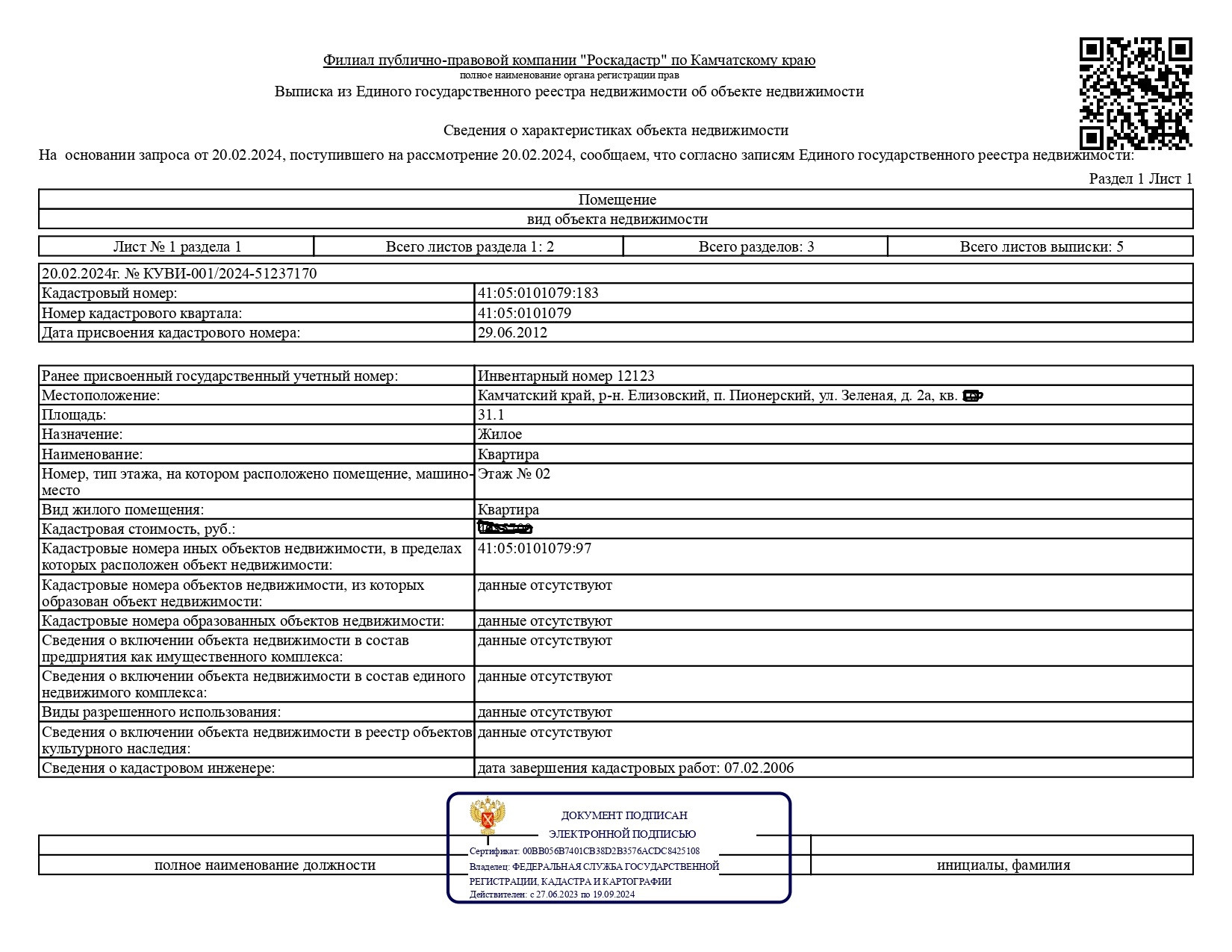 Стоимость недвижимости: