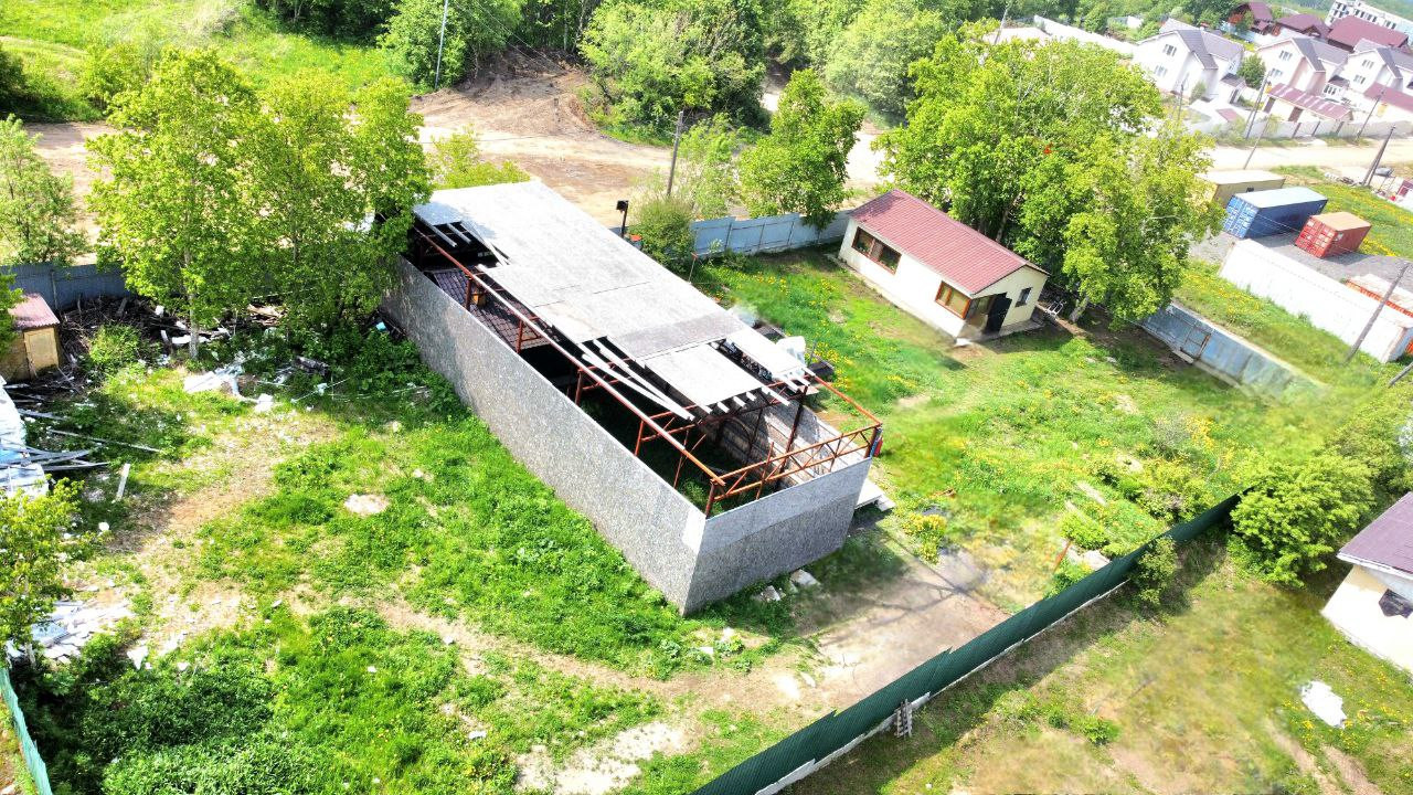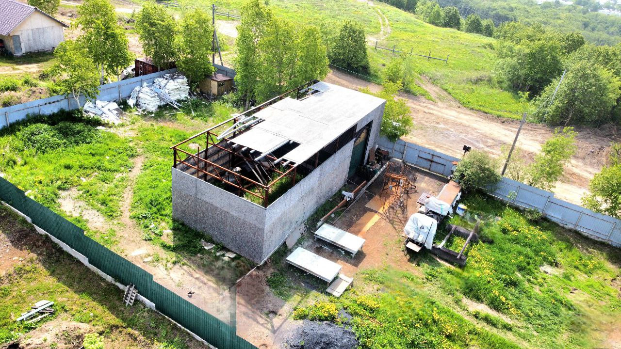 - Ангар площадью 126 м2. Каркасный тип постройки. Высота 5 метров. Не оформлен.