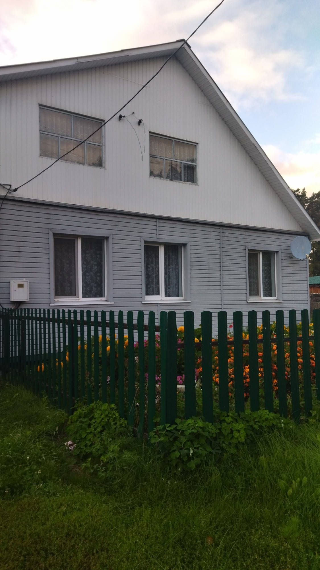 Дом 85 кв, земля 32 сотки, отопление электрическое и печное, вода центральная, имеется гараж, баня,надворные постройки, дом находится на берегу реки, два собственника.