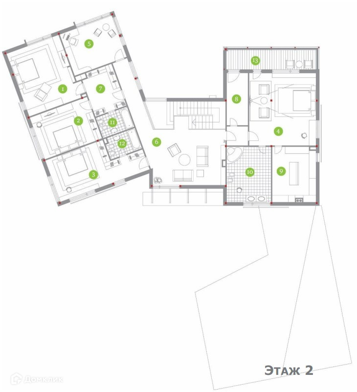 2 этаж: хозяйская спальня с гардеробом и с/у, 2 спальни с с/у, спальня, балкон.