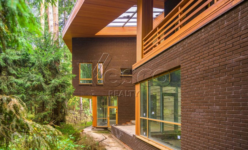 На просторном участке среди вековых сосен располагается великолепный монолитно-кирпичный коттедж 640 м2. Отделка фасада выполнена из высококачественного клинкерного кирпича, своды кровли из лиственницы, высота потолков первого этажа составляет 3,5 метра, а второго в коньке 5 метров!!!