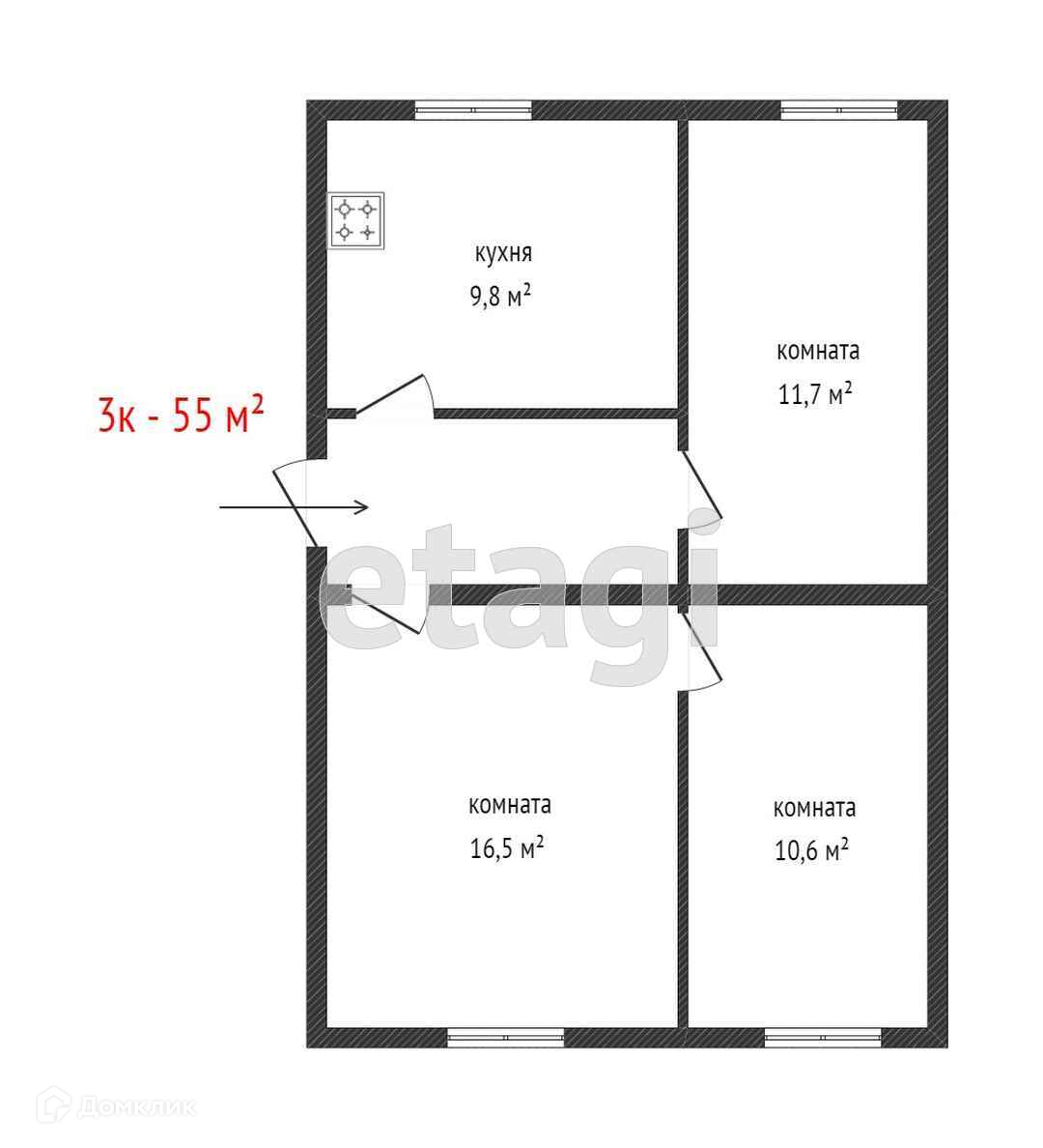 Общая площадь 54.6 м2