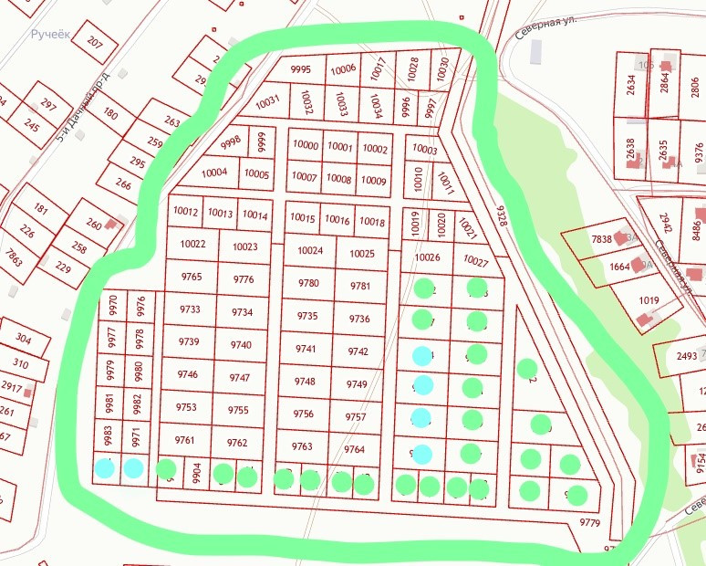 Участок ИЖС, правильной формы, ровный, рядом активная застройка + круглогодично проживающие соседи. Остановка 42 маршрутка в 400 м, магазины, школа, детский садик и тд. Рядом проходит ул. Северная.