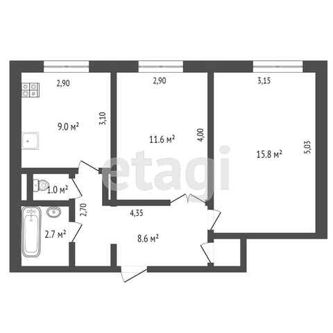 Данная квартира подходит под сельскую ипотеку 2,7%.