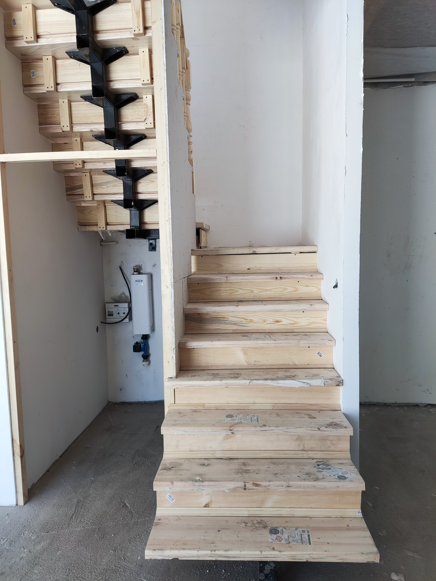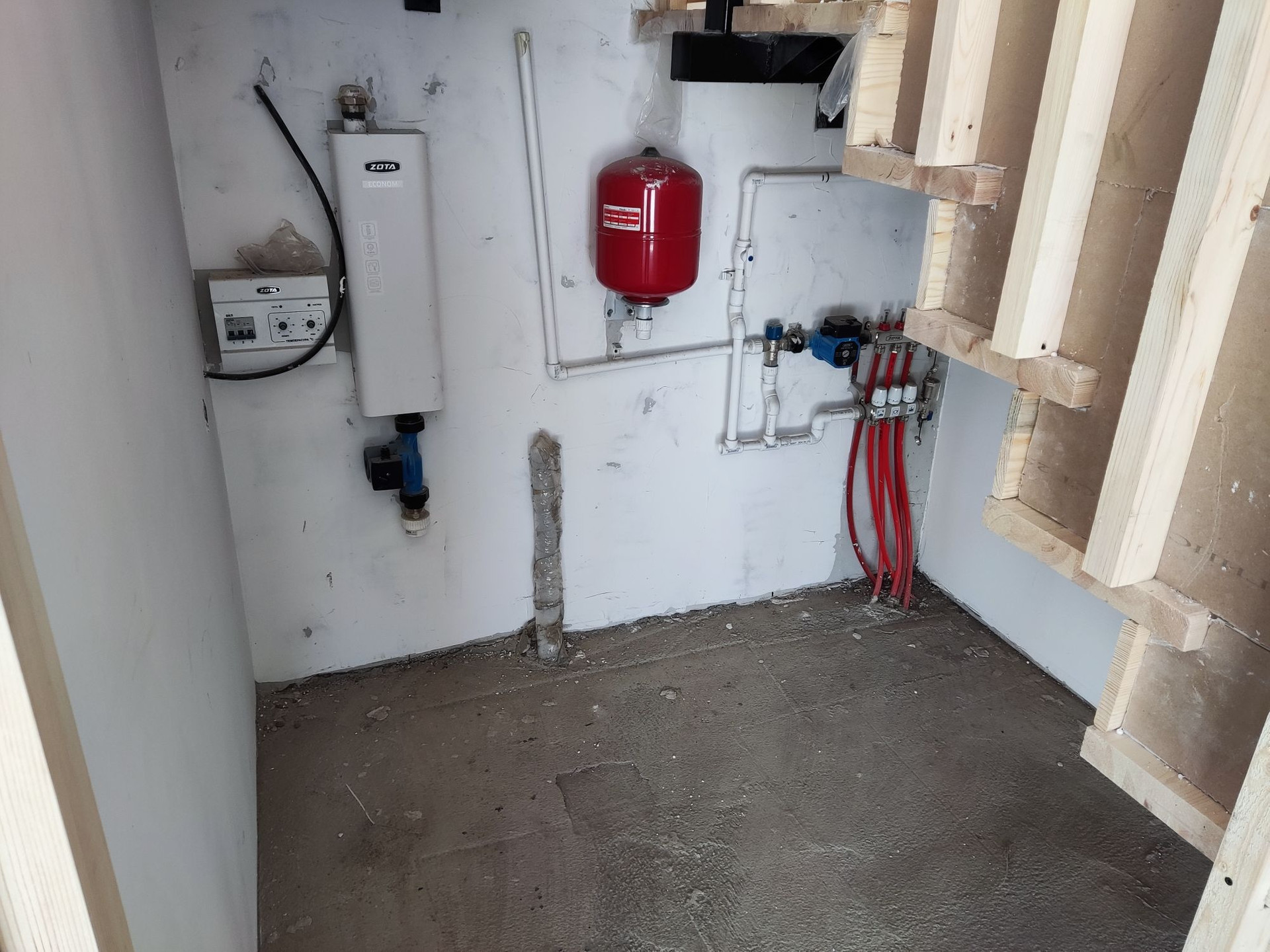 Отопление: теплые водяные полы на первом этаже, водяные батареи на втором.