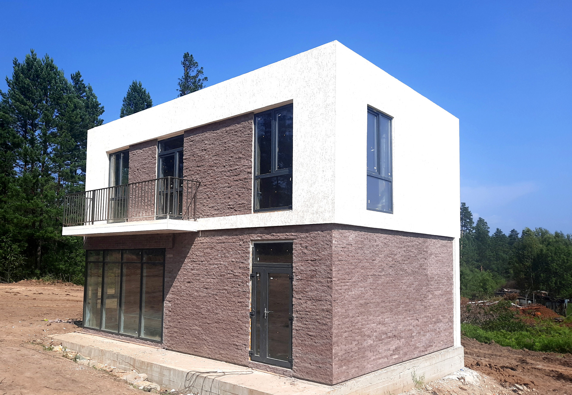 Дом в КП Лесной парк. Фундамент-плита, стены из блоков полистиролбетон, теплые водяные полы.