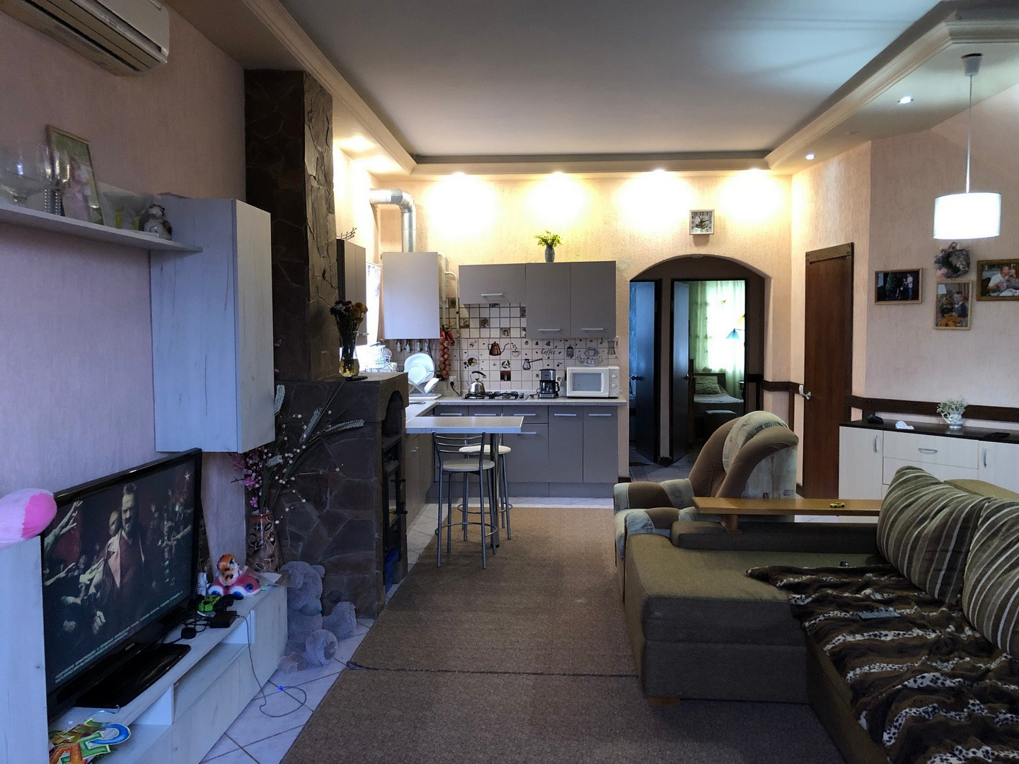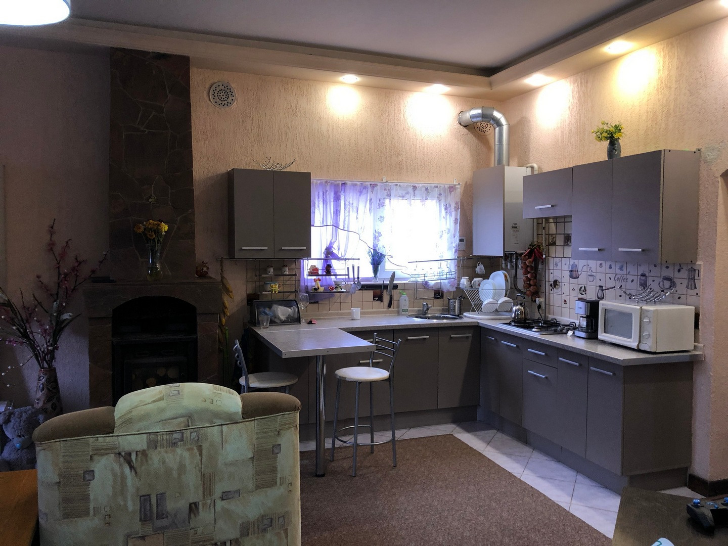 Полностью обустроенный, со всей мебелью, техникой, настоящим камином, тёплые полы, сан узлы на каждом этаже, теплые полы,