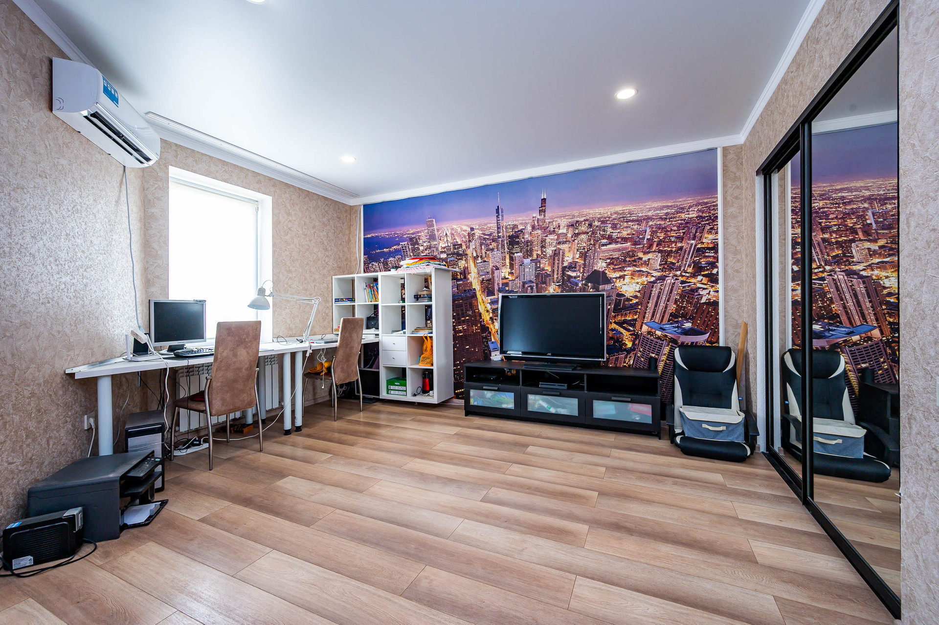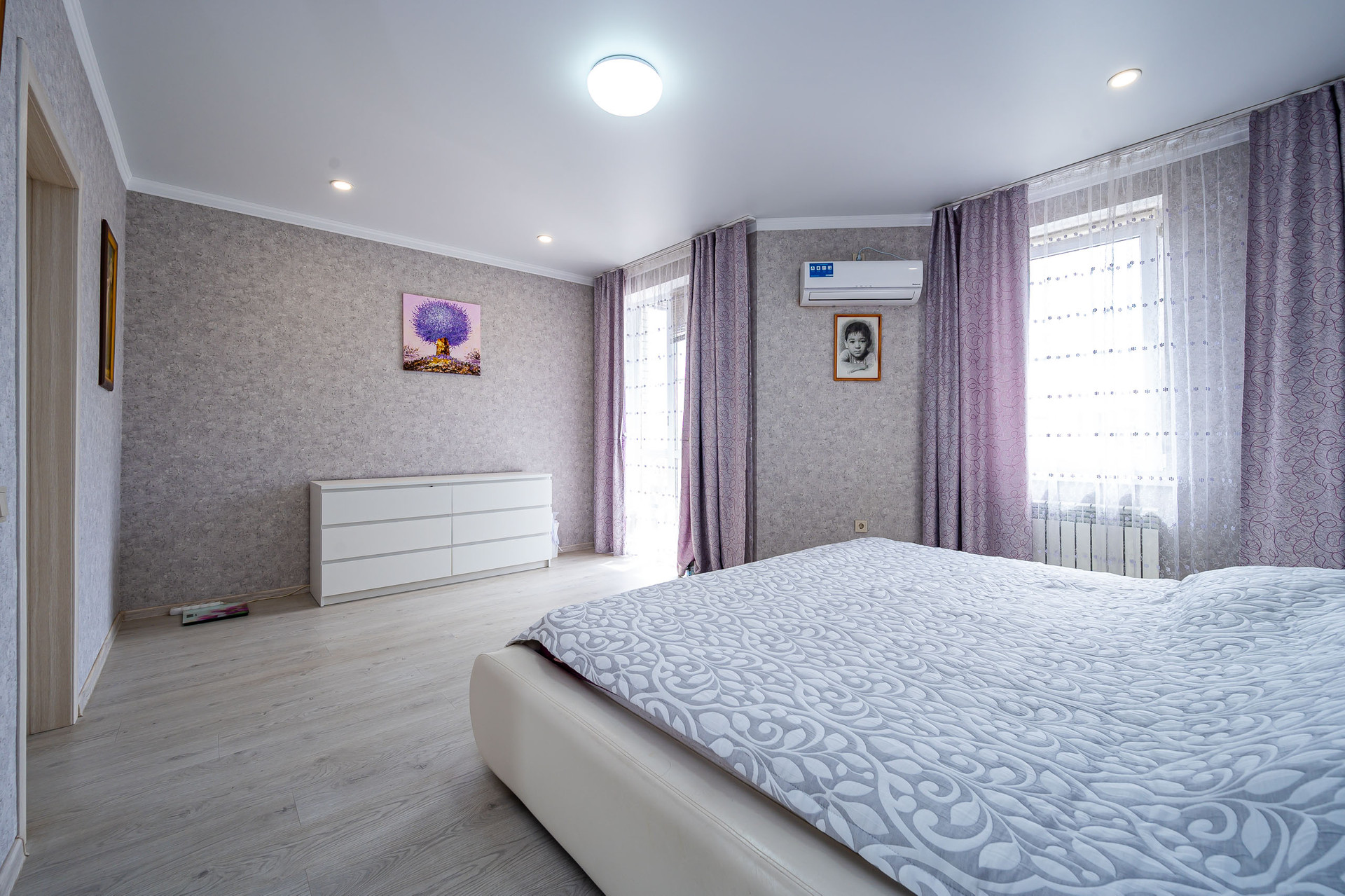 На первом этаже просторная кухня-столовая, гостиная, подсобное помещение, ванная комната. На втором этаже 2 изолированных комнаты, ванная комната. На 3 этаже 2 изолированные комнаты и ванная.