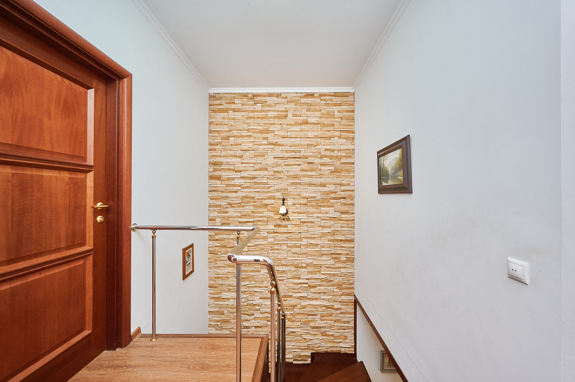 Дом с ремонтом и мебелью, состояние "Заходи и живи". Отличная планировка: три комнаты, одна из них "Мастер-спальня" со своей ванной комнатой и гардеробной и выходом на балкон; большая гостиная; просторная кухня с выходом на террасу;  2 санузла на первом и втором этаже. На первом этаже во всех комнатах теплые полы.