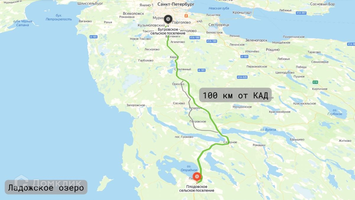 Расстояние от КАД до п. Приладожское  100 км, время в пути приблизительно составит      1 час 30 минутИнфраструктура: