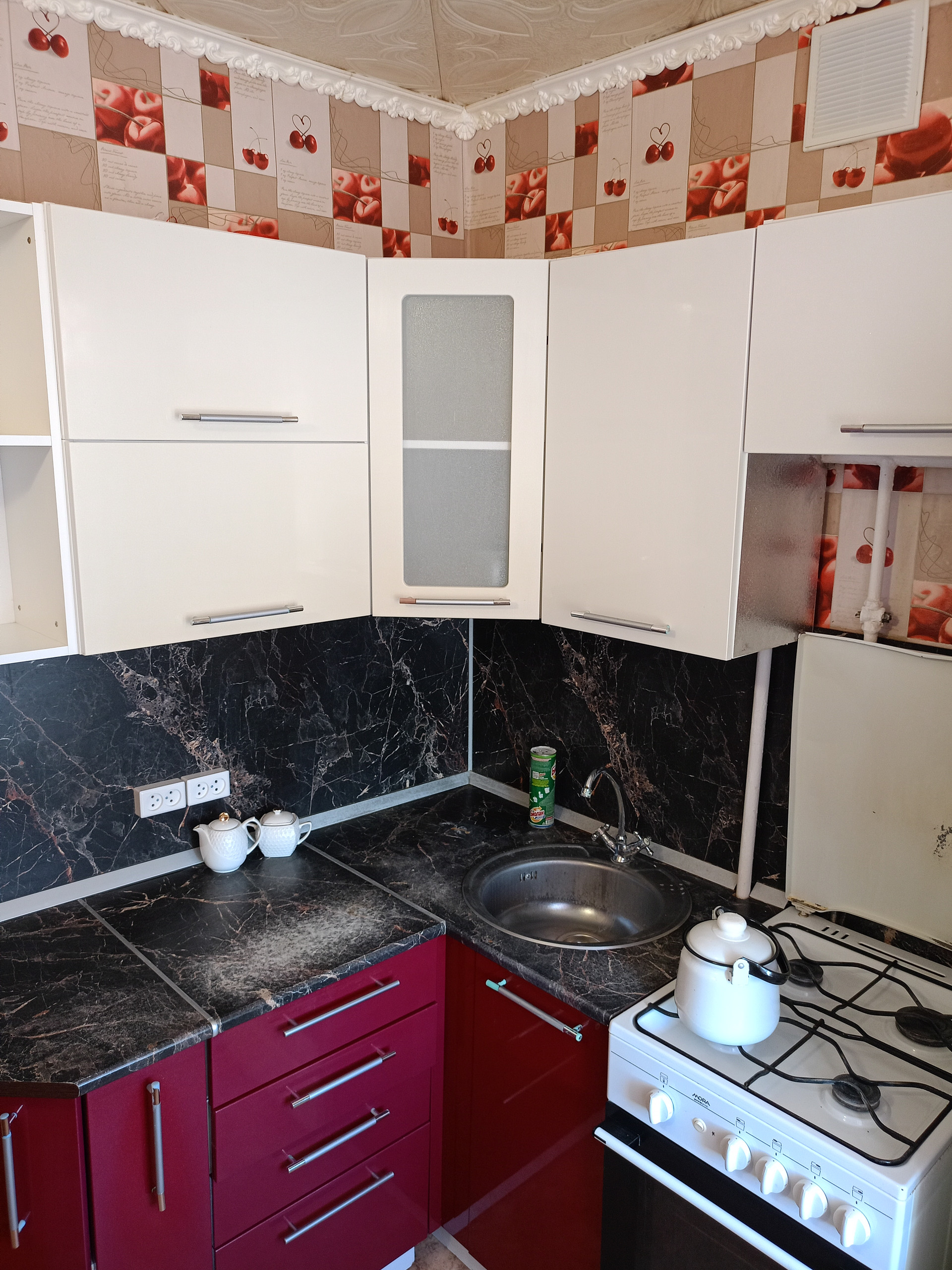 В квартире остается кухонный гарнитур, шкаф.